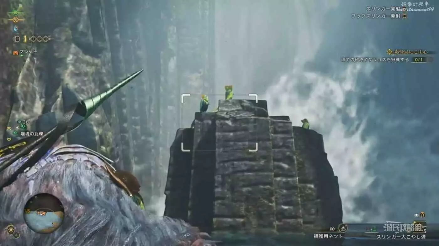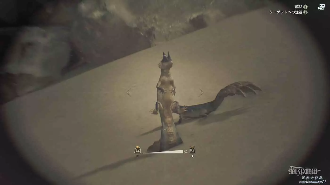 推薦站在安全的距離位置,使用投射器投擲【音爆彈】,在其畏怯時用捕獲網捕捉,注意這個過程要迅速,否則從音爆彈切換至捕獲網動作過慢的話,畏怯狀態會解除,從而導致其逃脫。