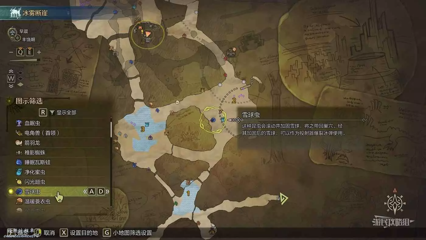 雪球蟲出現後會在地圖上顯示標記,可以通過左下角的圖示篩選來追蹤,在騎鷺鷹龍的狀態下自動尋路即可。