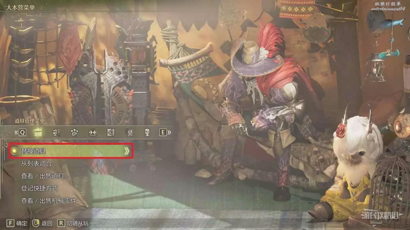 玩家需要前往任意營地的個人帳篷中,第一個【道具管理功能表】選擇【替換道具】。