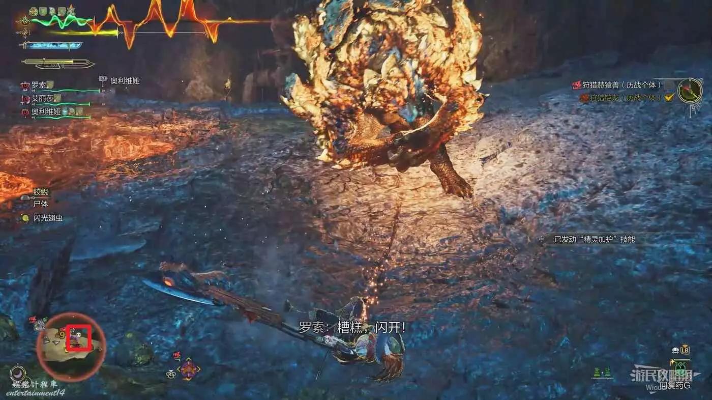 怪鳥吐火球前會提前抬高頭部並張開雙翼,短暫蓄力後朝目標方向以抛物線的方式吐出一口火球,躲避難度很低,看到蓄力直接走位即可。