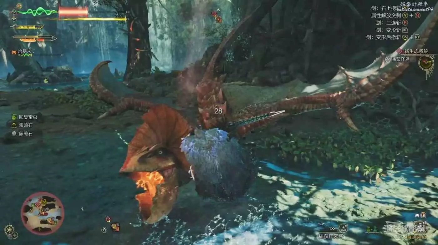 然後瘋狂的對怪鳥扔麻醉球,當怪鳥的麻醉值到達某個節點時自動捕獲成功。