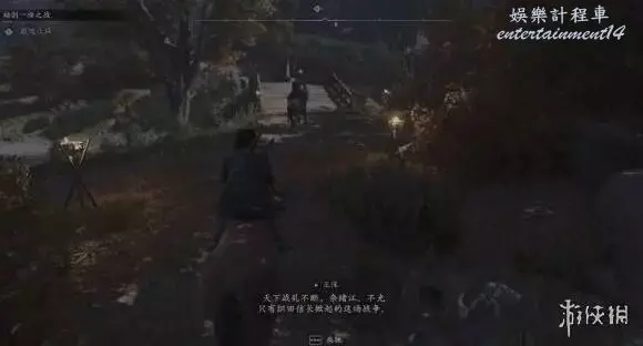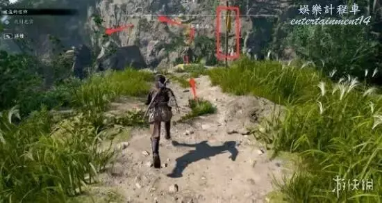騎上父親的馬,出發前往交野取得盒子。可開啟指引追蹤任務,此時地上會出現銀灰色的指引線。