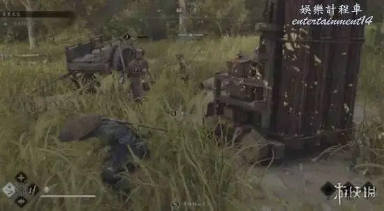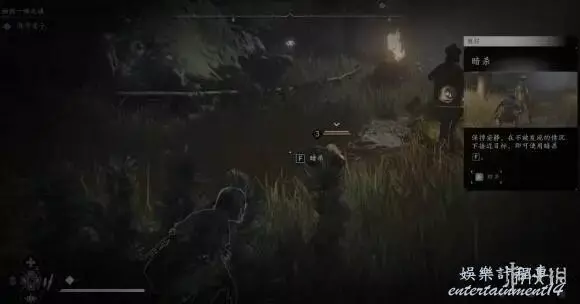 教學:匍匐-按住C匍匐並躲在高大植被,可避免自己被發現,是暗殺必備的前行手段。