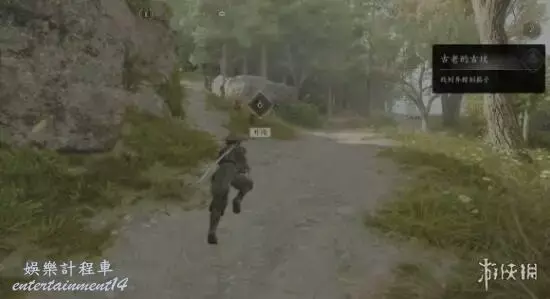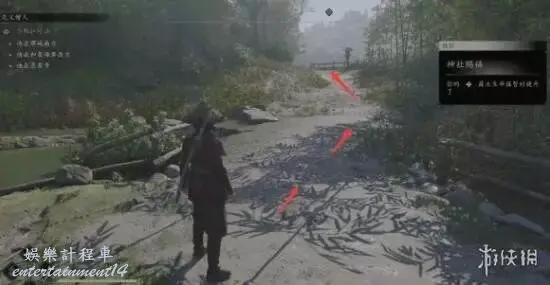 完成完後轉身,順著路走,視角往左看,看見完成的互動標記,就能完成第二個神社。