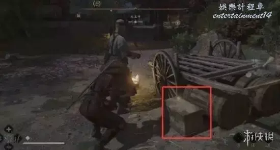 利用抓鉤跳到空中,使用F從上空暗殺怨靈武士,拿到盒子,掏出交野城。