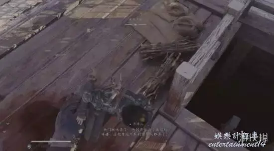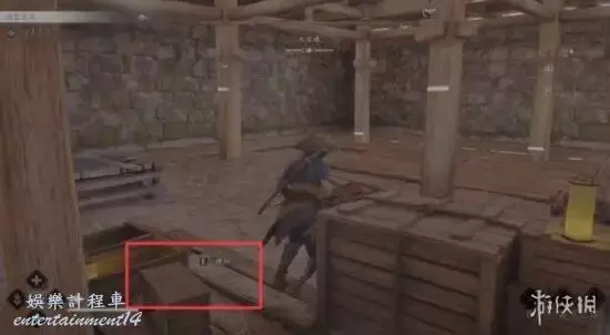 跳到前方的房梁上,往下看直接空中F將敵人暗殺,搜刮屍體,然後搜刮旁邊的箱子。