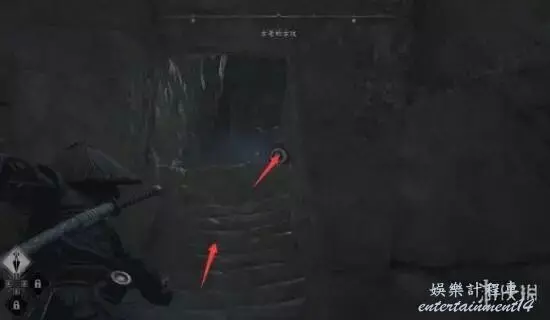 順著地道往前面走,到這裡的時候直接過過不去,視角往上看能看到鉤鎖,使用鉤鎖蕩過去。