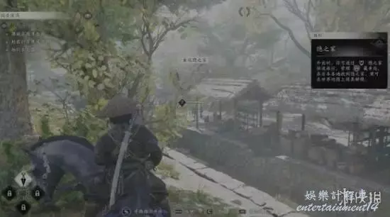 打開地圖,追蹤任務尋遍堺城,騎上馬跟著任務追蹤走,途中會發現堺城隱之家。