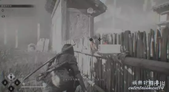 到達交野城外,下馬,靠近城牆,可使用抓鉤投擲到固定點上爬上塔樓。