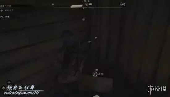 出來後進右邊的房間,將門口的燈熄滅,開門進去,先搜刮右手邊的箱子,然後在左手邊的木箱裡藏匿起來。