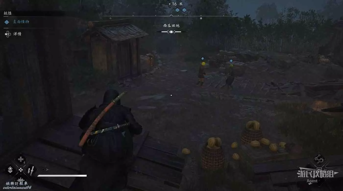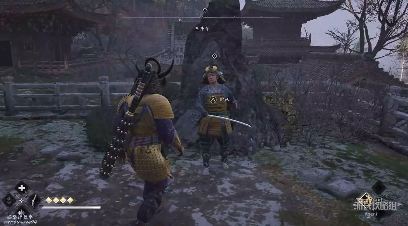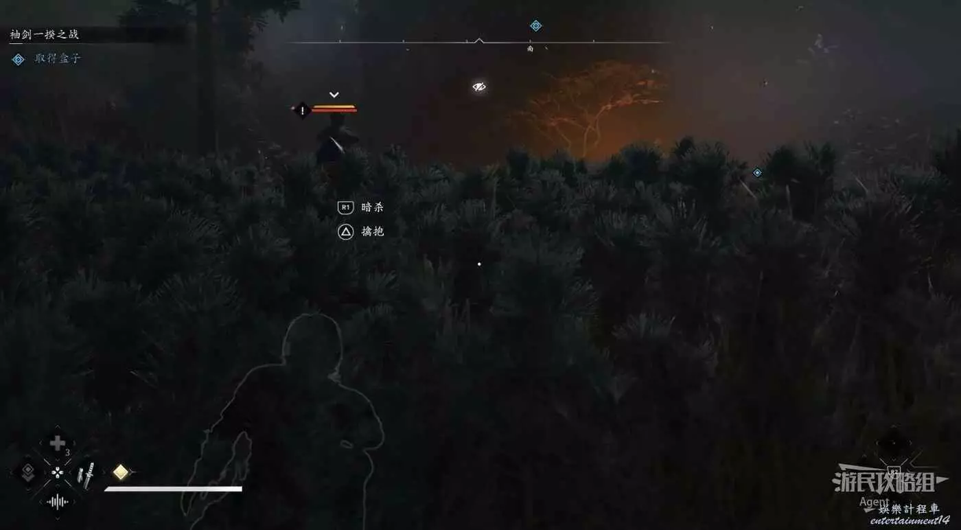 在草叢中潛行避開大量敵人,到前面過橋。劇情後擊敗織田氏壯漢。