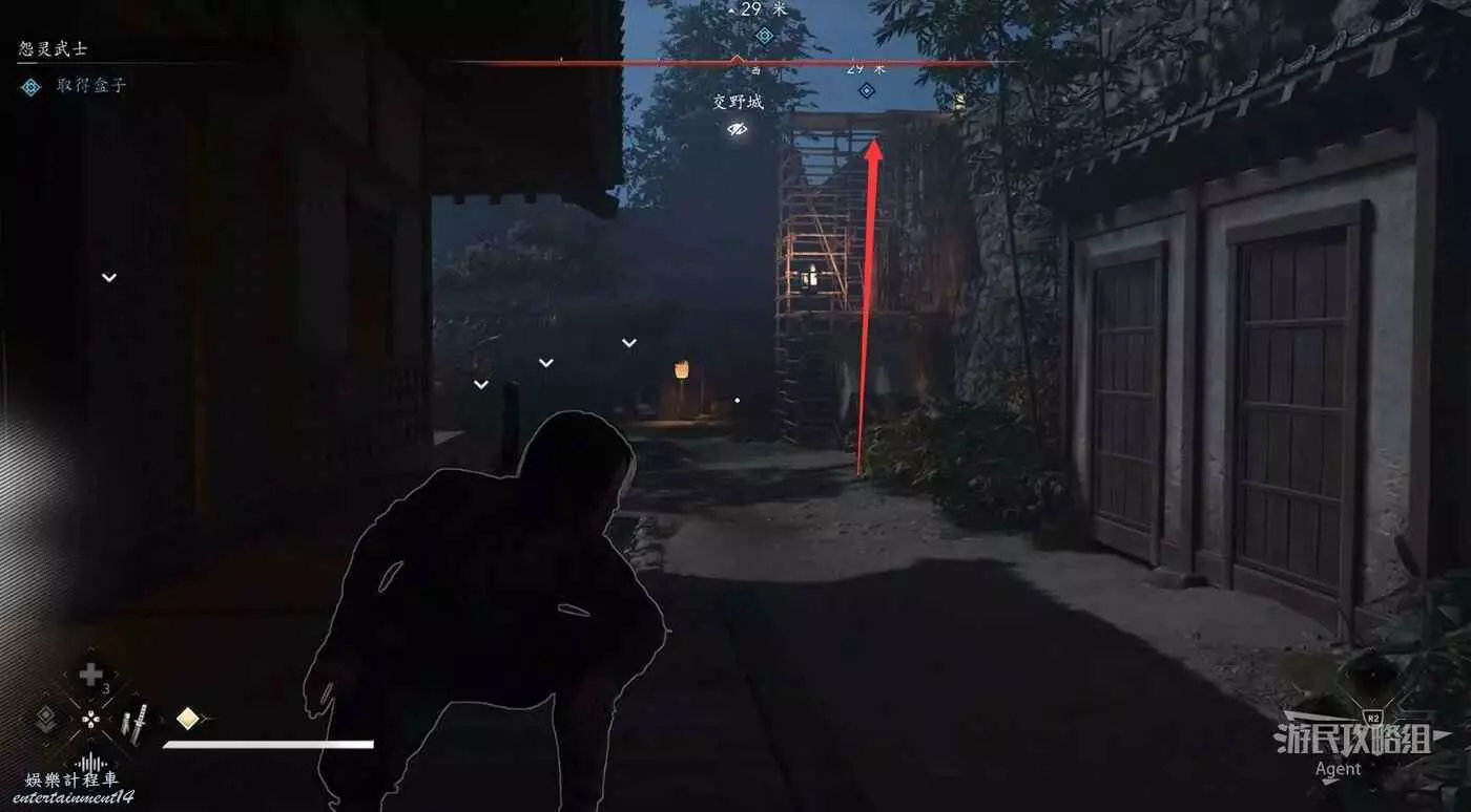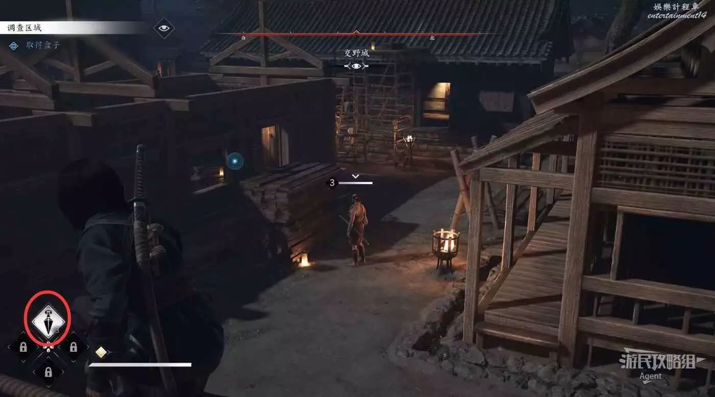 扔苦無(飛鏢)熄滅燈火,在黑暗中潛行敵人就很難發現你。