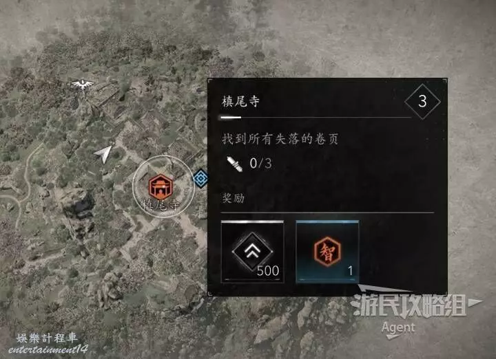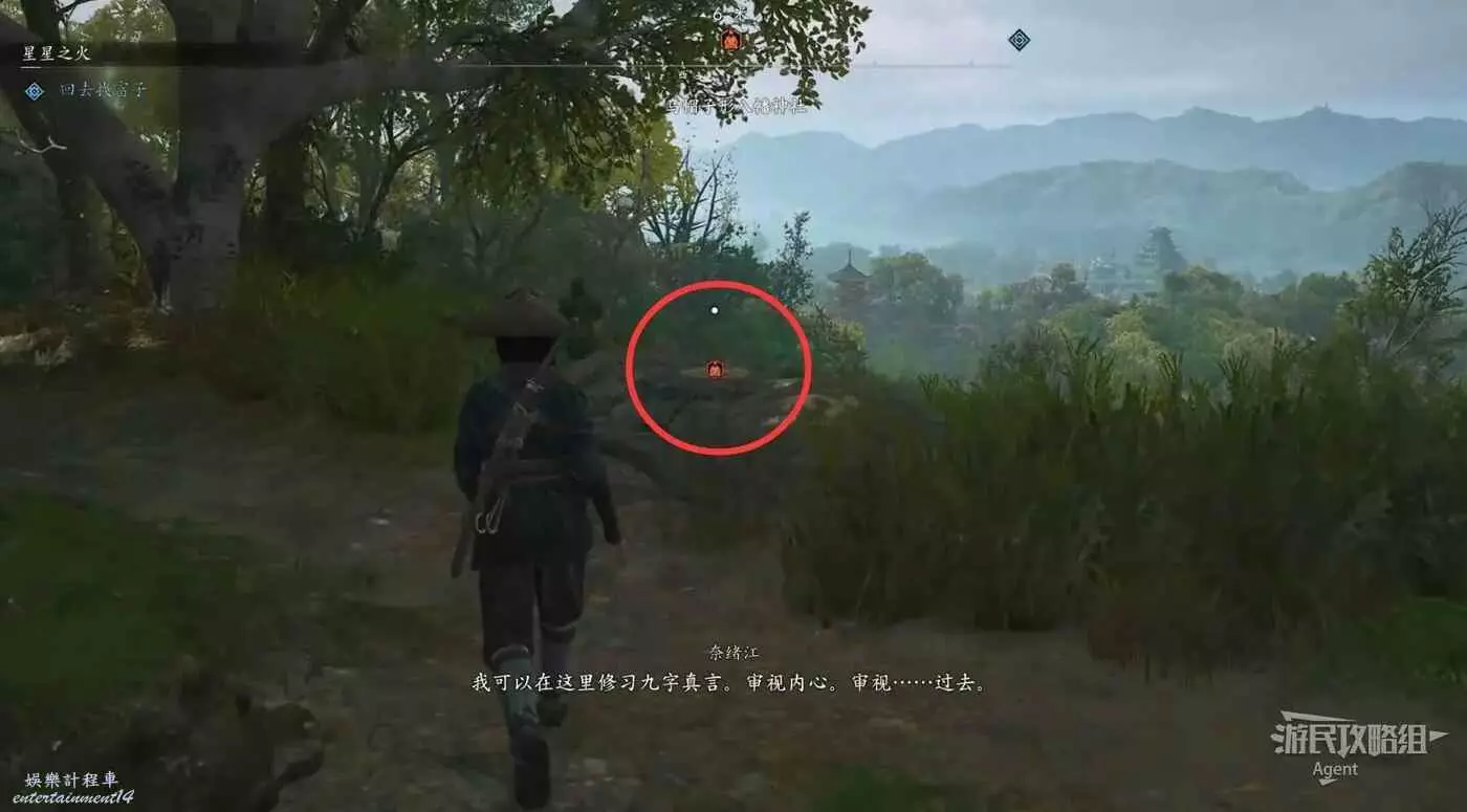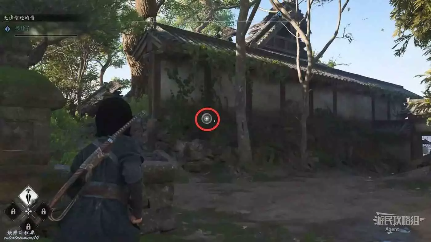 用觀察模式可以看到失落的卷頁,顯示為白色的光點。收集三個失落的卷頁後,去劈竹子。