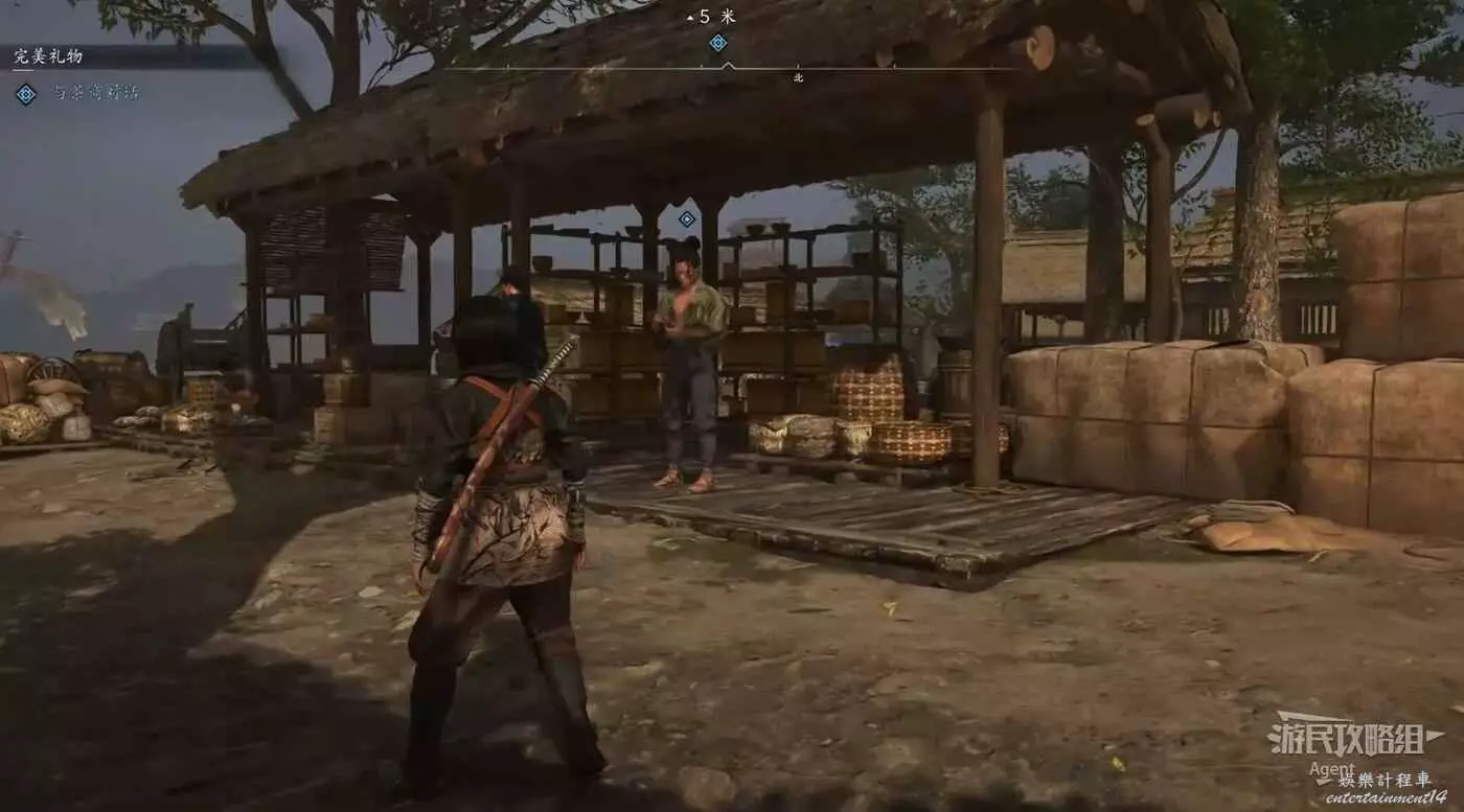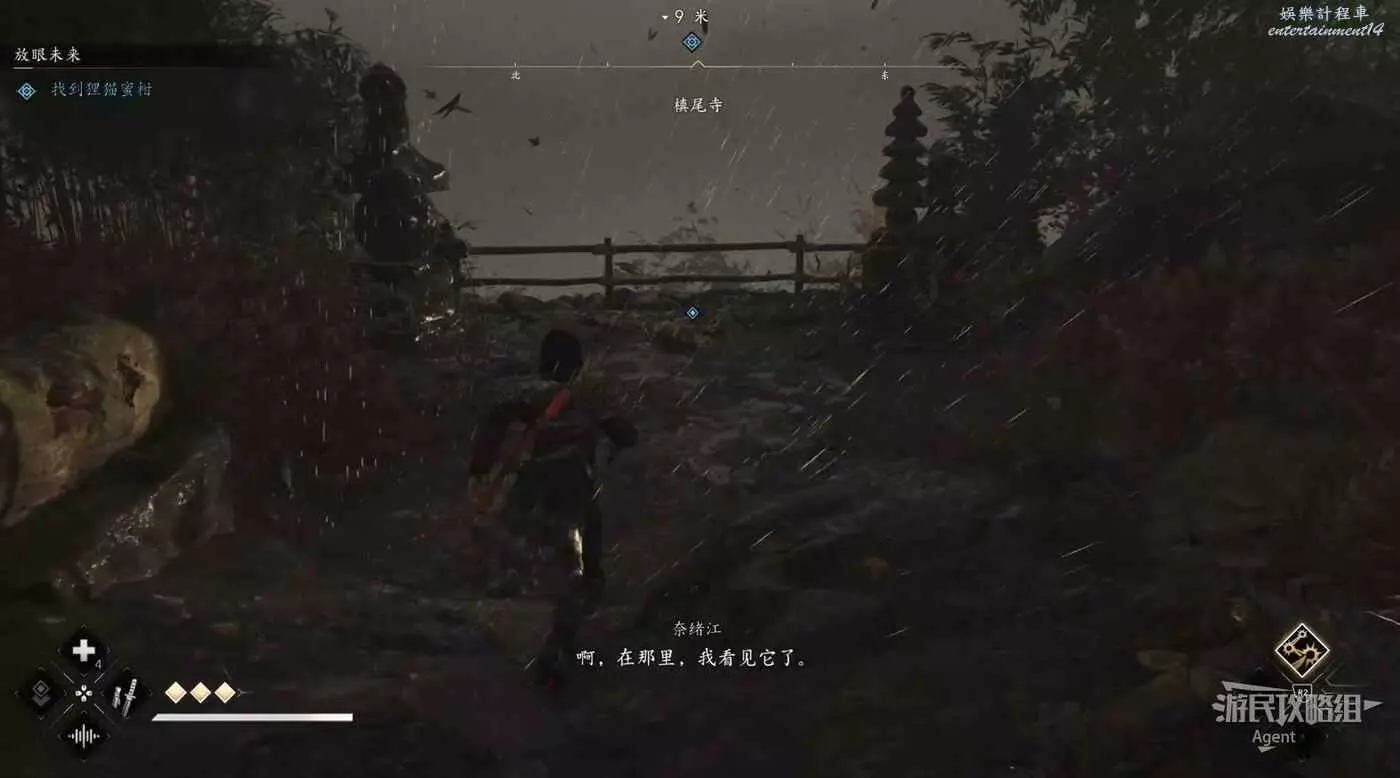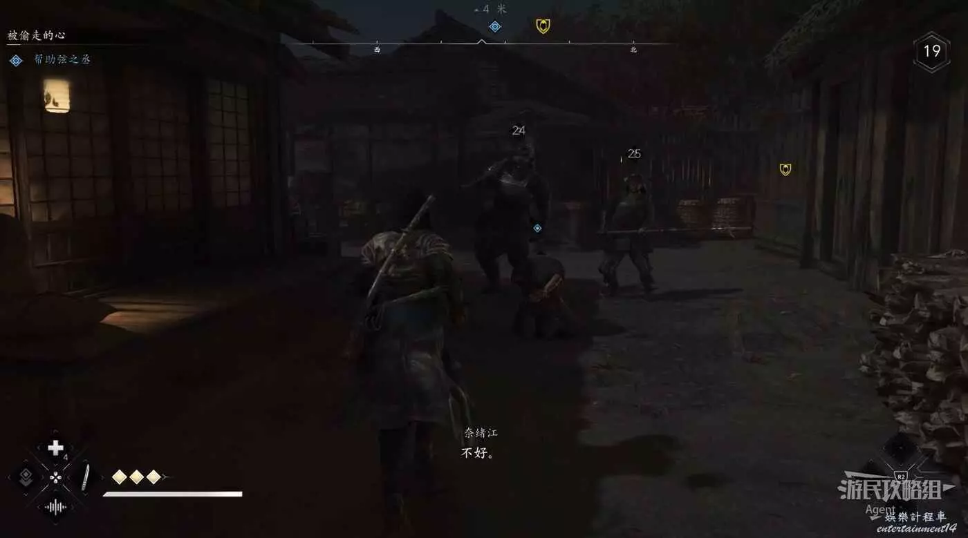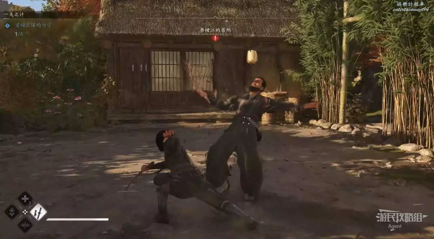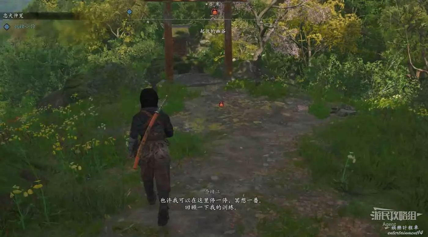 跟隨茉津婆婆獲得武士刀,然後前往長野關,路上遇到敵人,蹲在草叢裡避開他們。