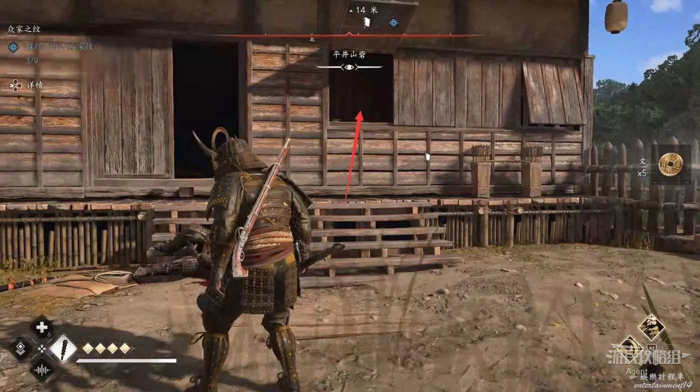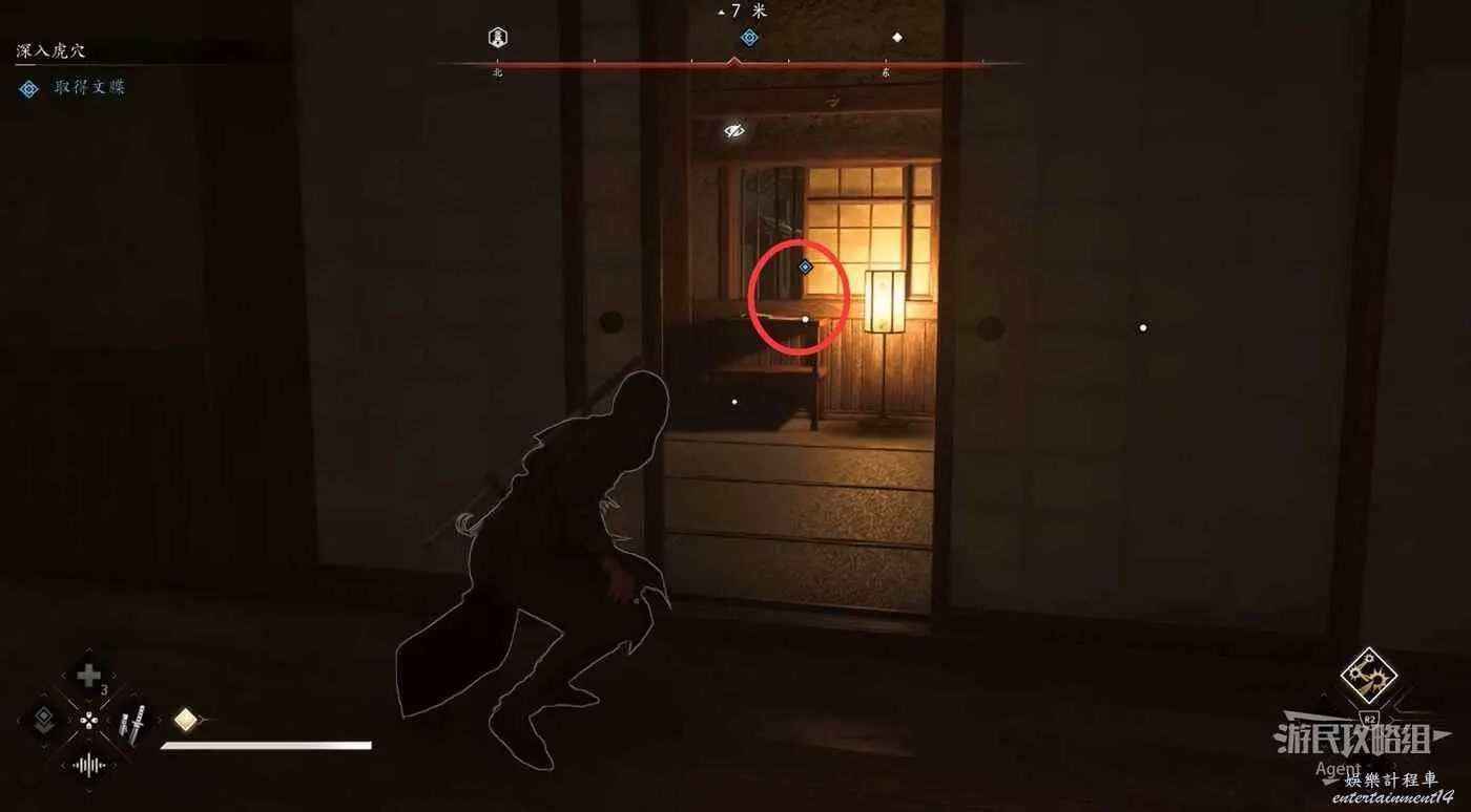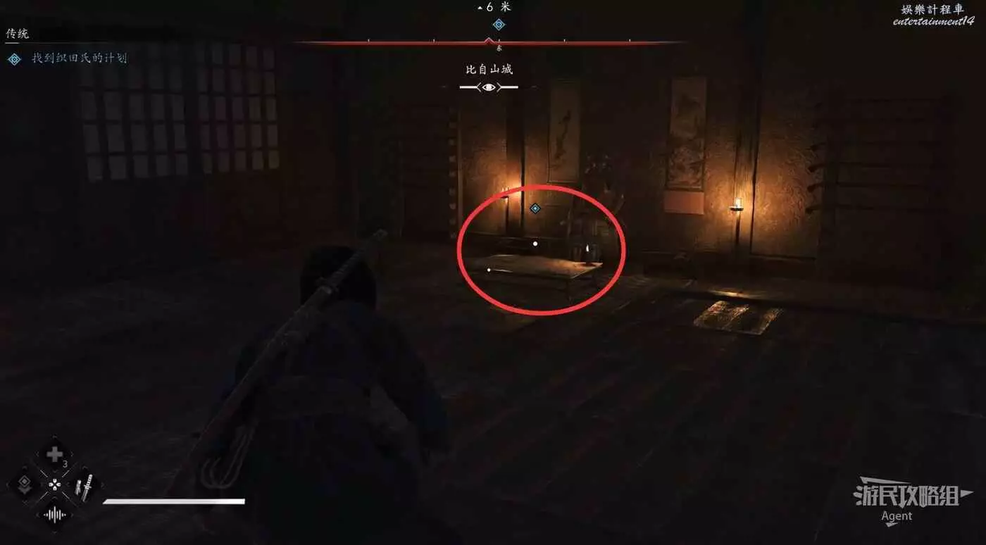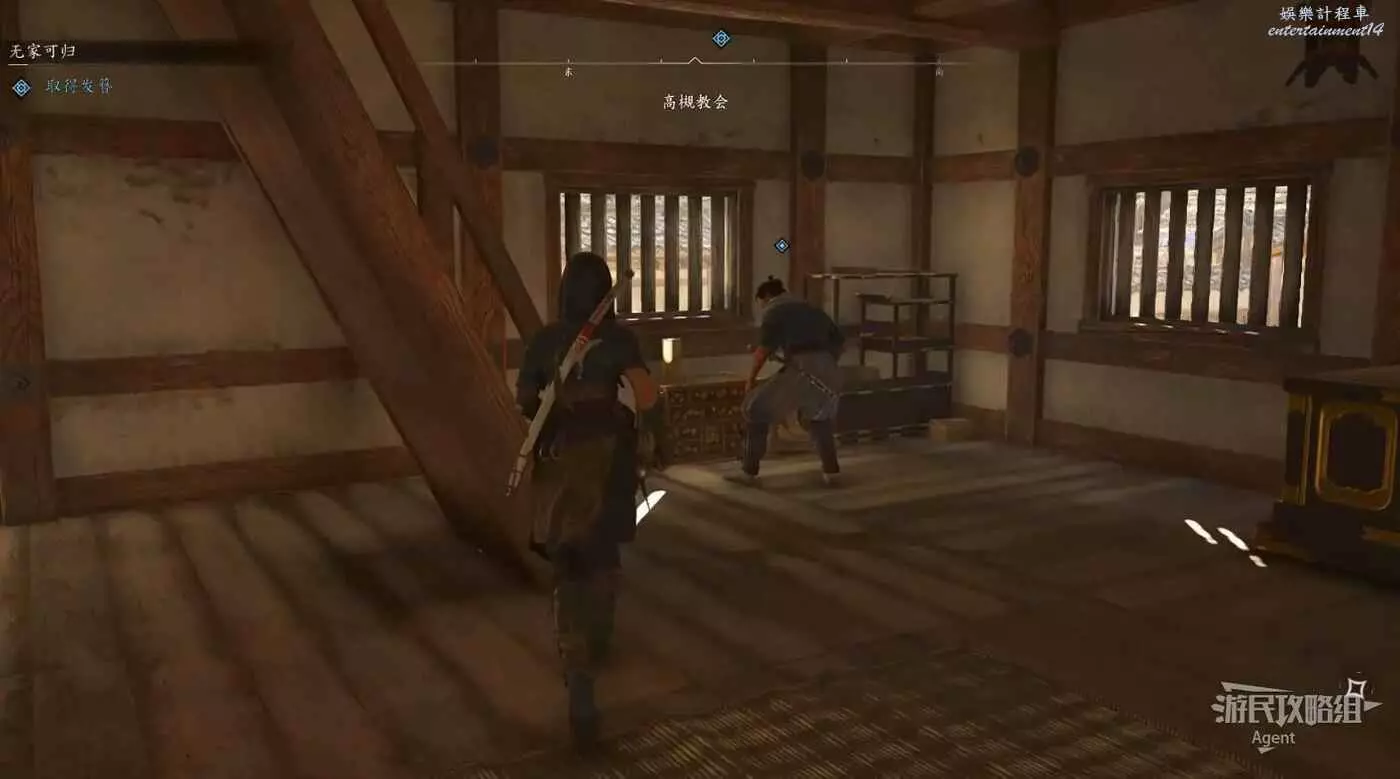 進入營地後右拐,從房子側邊的窗戶進去,找到織田氏的計畫。