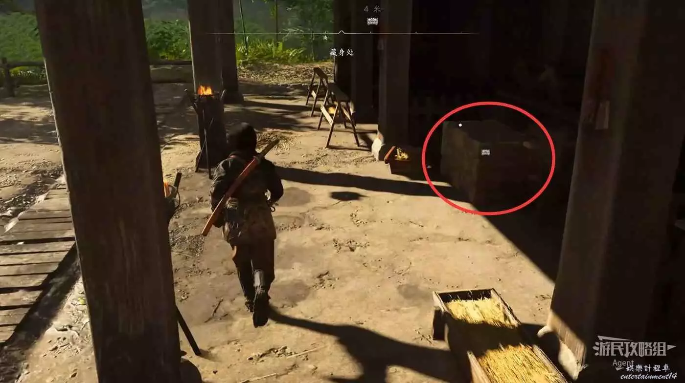 刺殺敵人後,可將屍體扔進草堆裡隱藏。