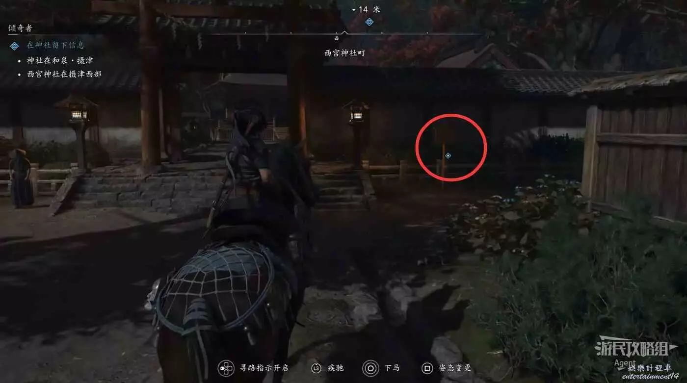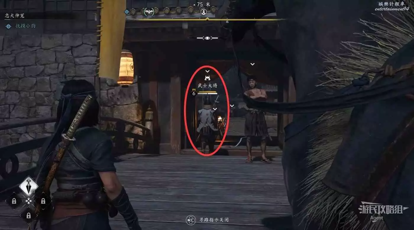 離開富子的宅邸,使用尋路指引,白線會帶你抵達當前目標,或當前你自己的標記地點。