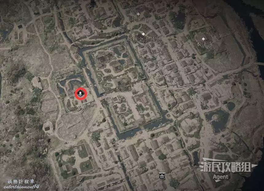 京都本能寺附近,使用彌助和太田牛一對話,他要你收集9個家紋。