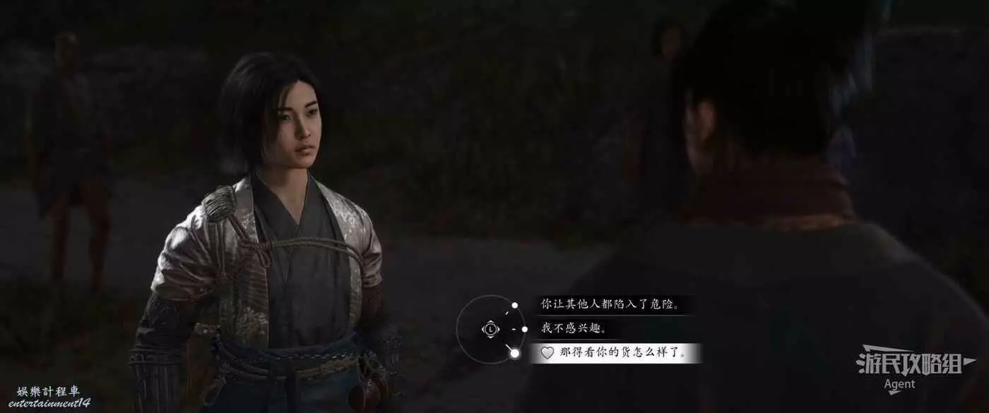 幹掉伊勢貞興後,弦之丞開始挑逗奈緒江,注意對話選擇,想和他戀愛的話就選擇愛心選項。如果介意就別選愛心選項。