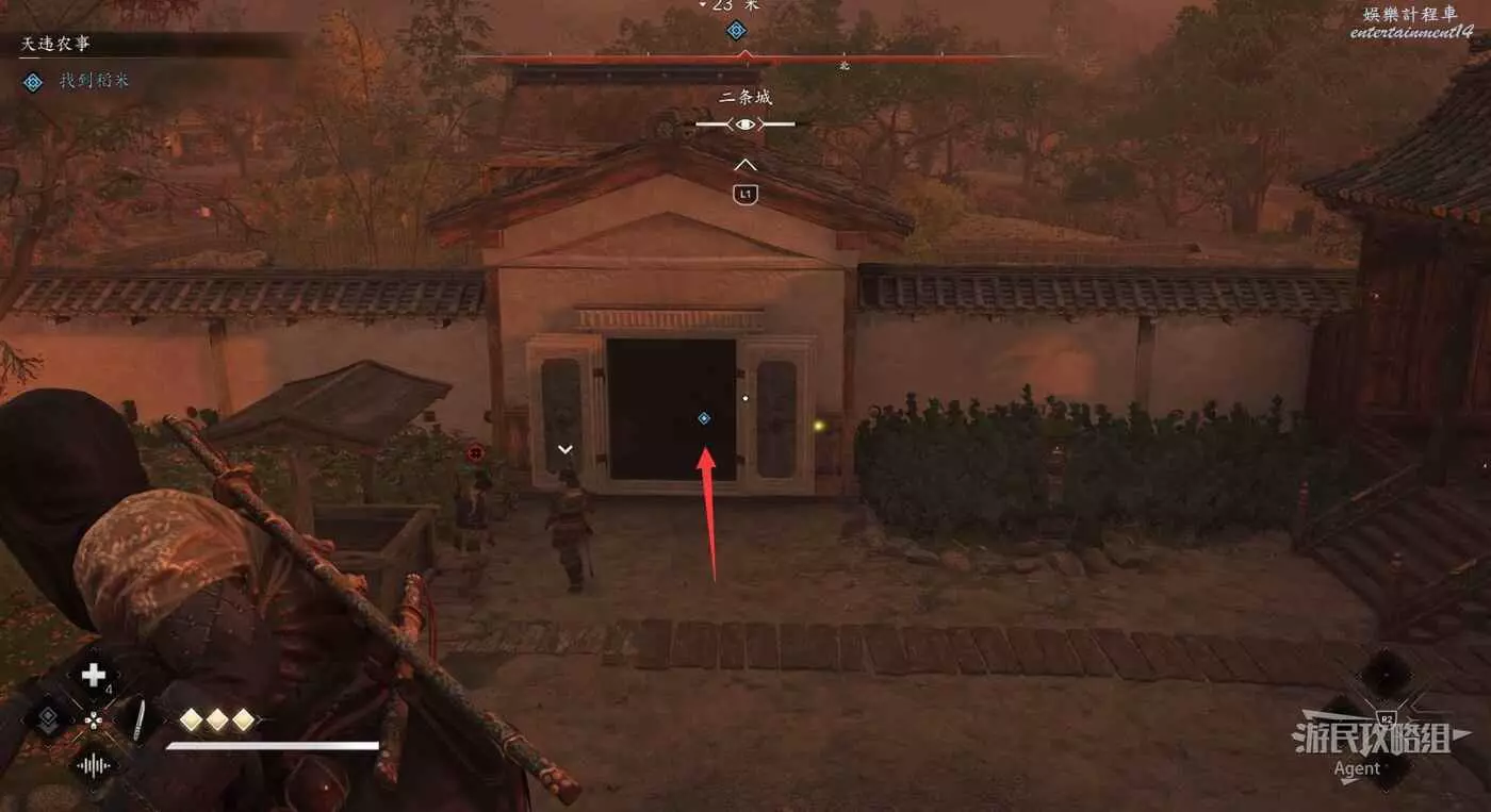 在京都的二條城找到稻米。二條城裡的傳奇寶箱,是彌助的強力護甲,可以順便拿。
