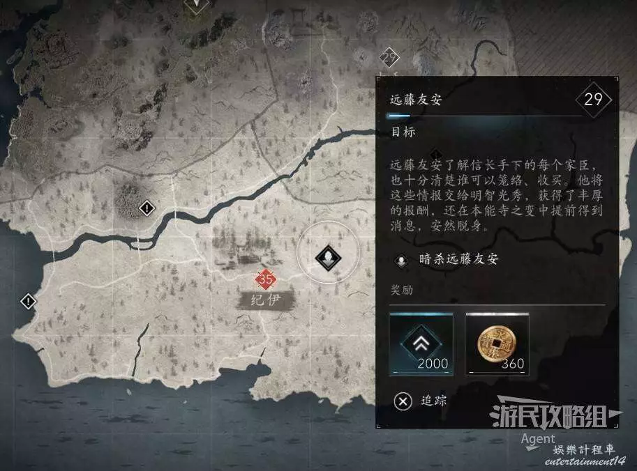 剩下三個手下在近江、若狹、丹波,先完成目標的相關任務,然後再刺殺目標。解決全部手下後再去刺殺在丹波的鐵手。注意越到後面地圖等級越高,戰鬥難度越高,你可以選擇越級刺殺,或者等以後再說。