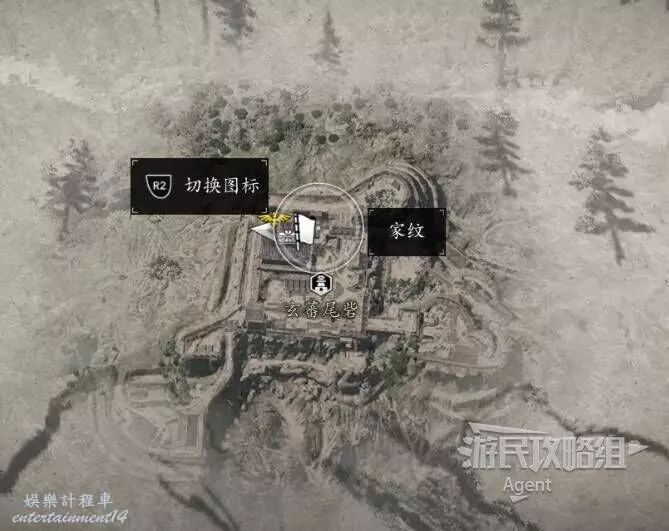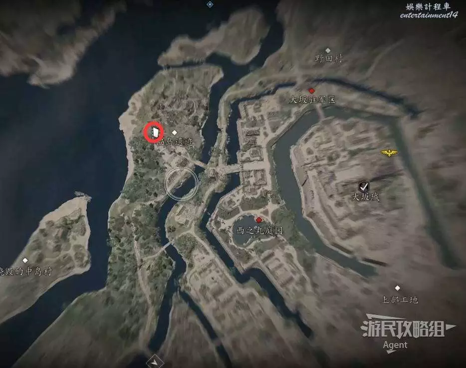 織田氏家紋在大阪城西面的大島上,推開塔底堵著門的櫃子,進入塔底拿到小盒子。