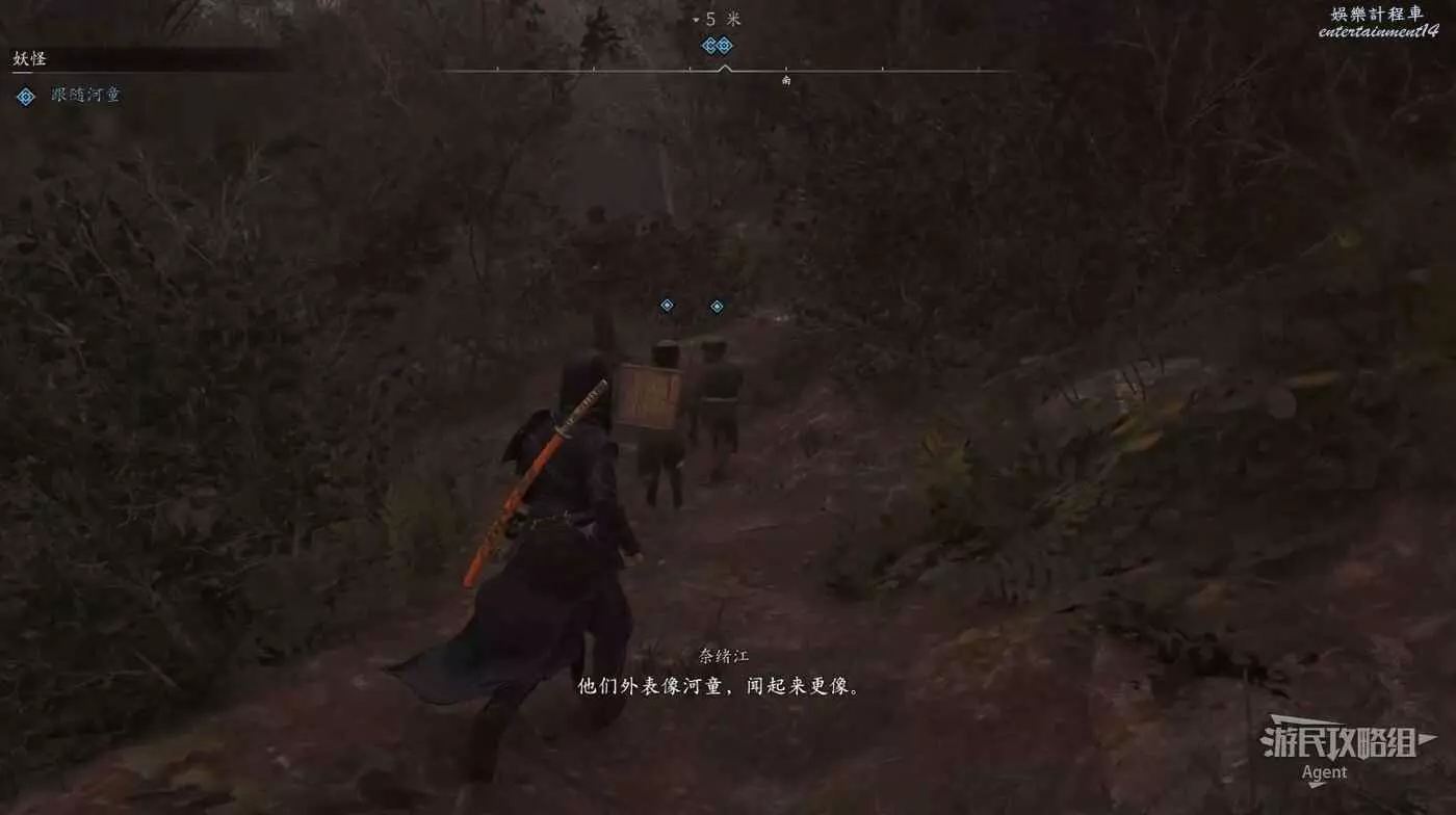 河童在山城北部,其實是倆小孩,跟隨他們去村裡解決強盜。