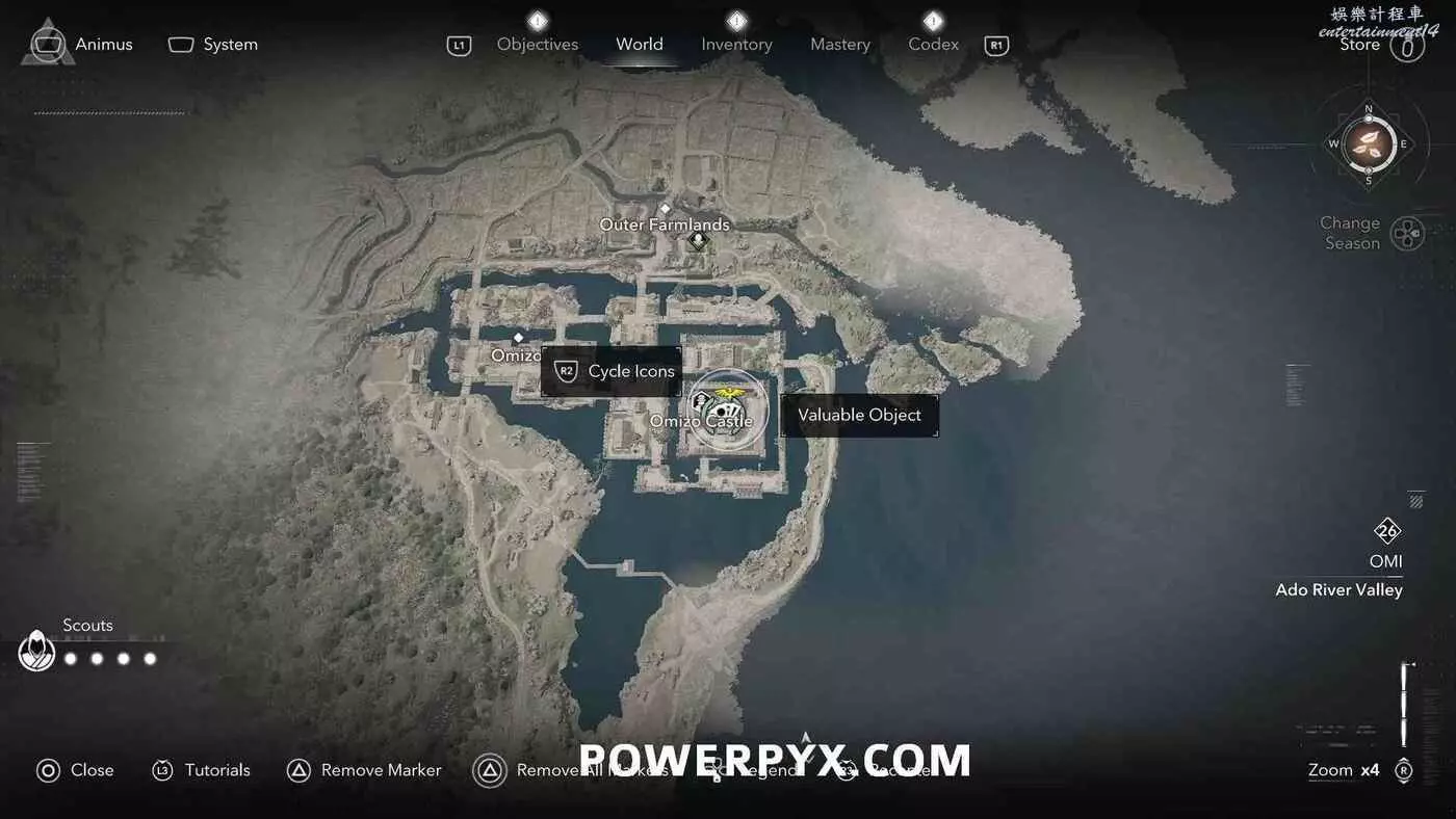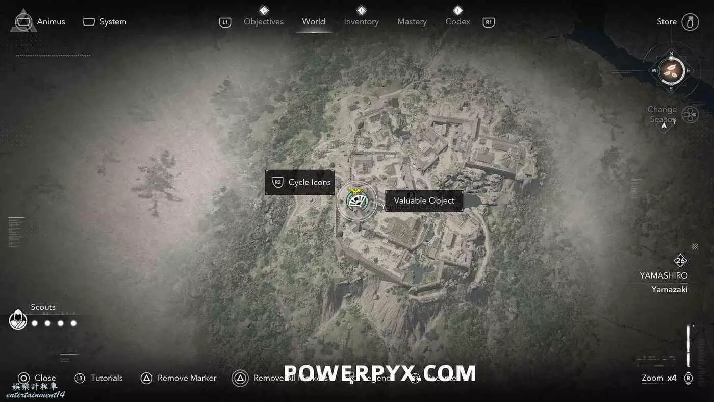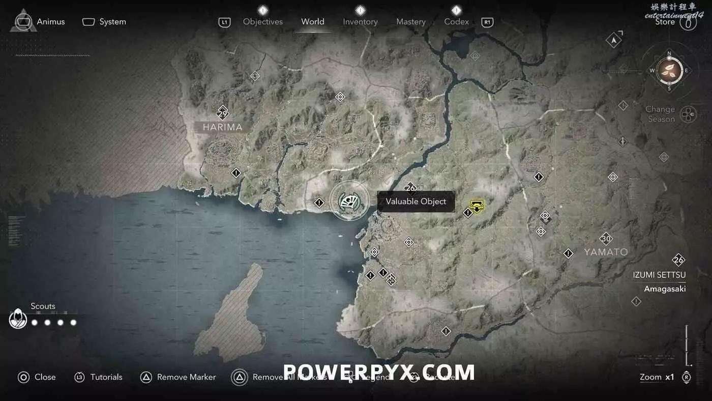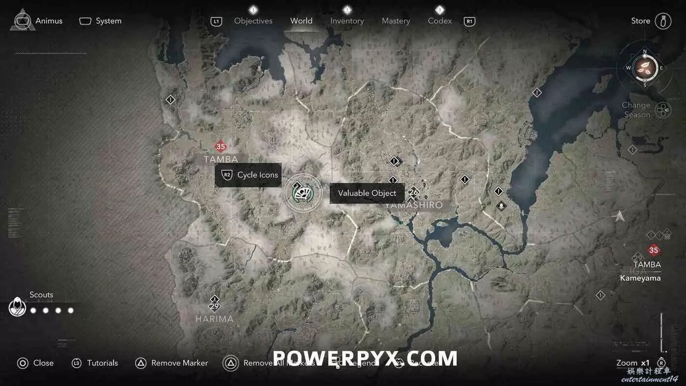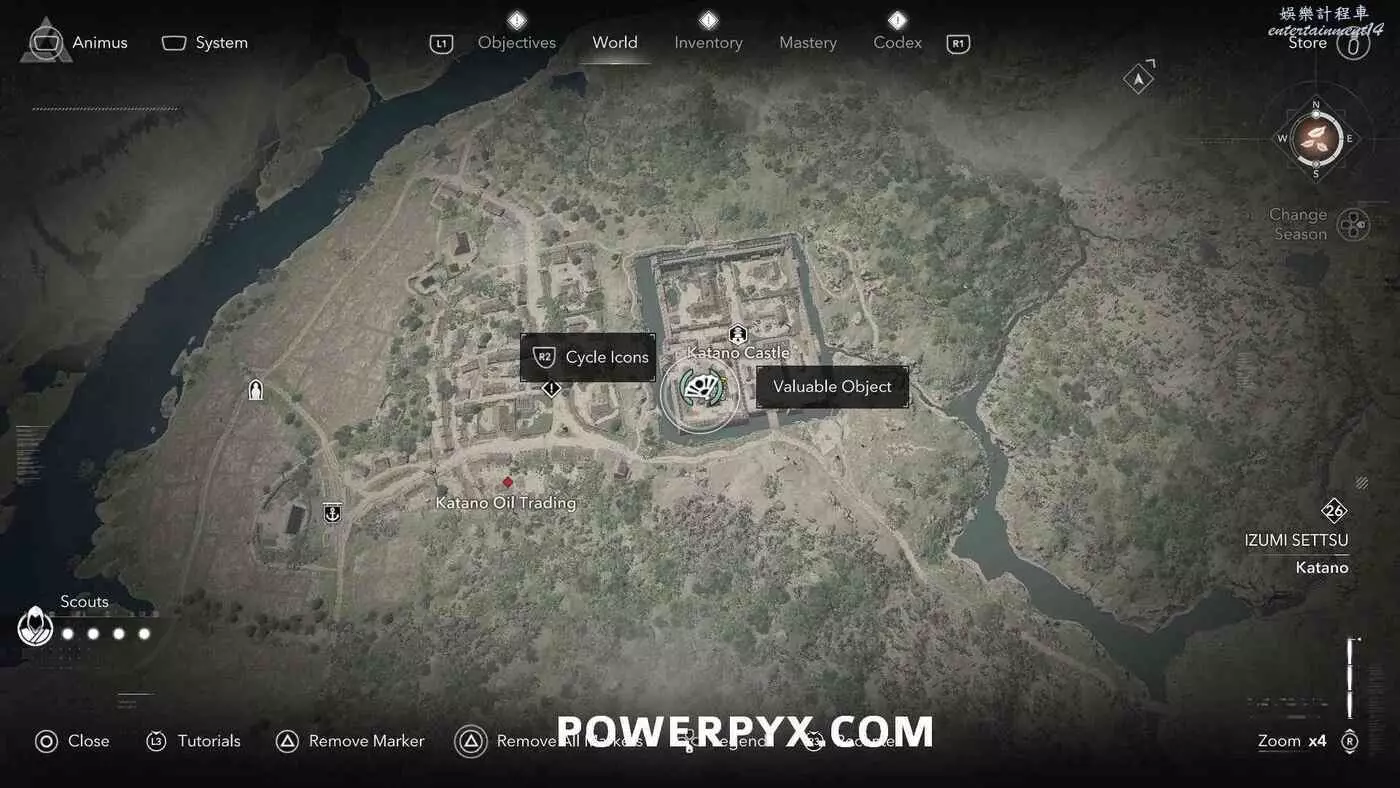 寶物可以在城池內找到,完成所有城的探索時可以自動獲得。角色靠近寶物所在位置時地圖上會出現一個白色的摺扇圖示標記,只有在地圖完全放大時才會顯示,也可以按觸控板在地圖上篩選顯示。