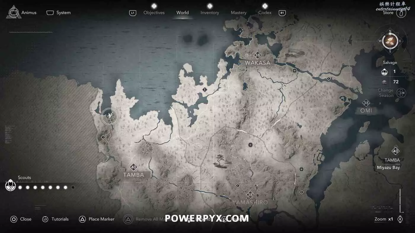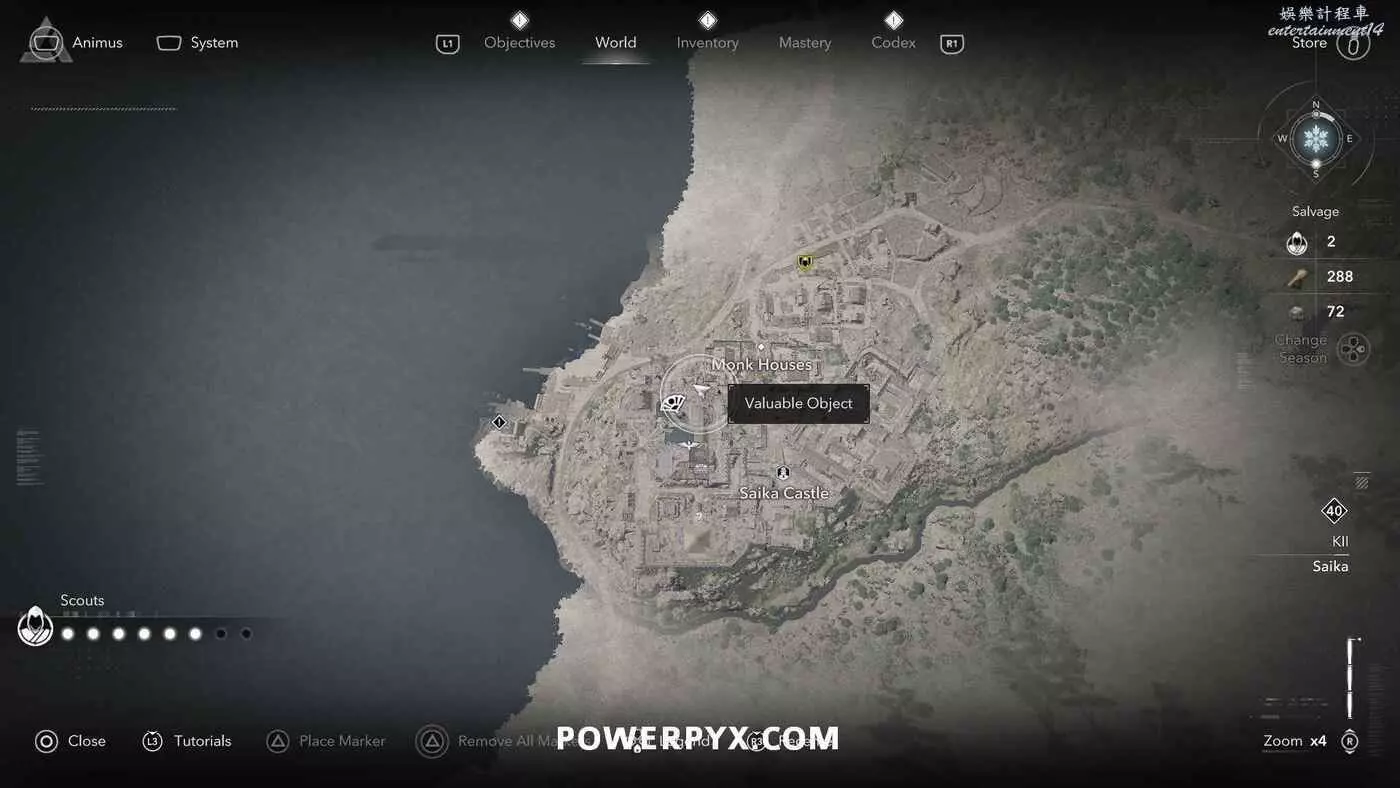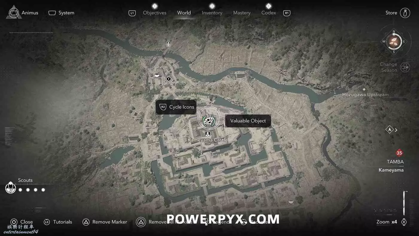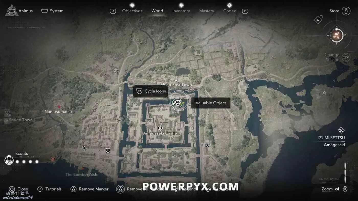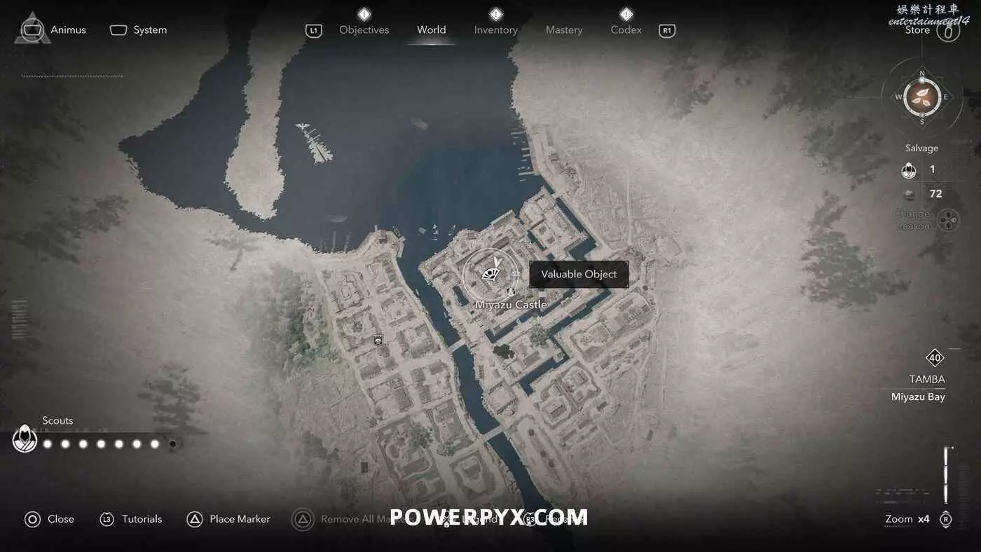 寶物可以在城池內找到,完成所有城的探索時可以自動獲得。角色靠近寶物所在位置時地圖上會出現一個白色的摺扇圖示標記,只有在地圖完全放大時才會顯示,也可以按觸控板在地圖上篩選顯示。