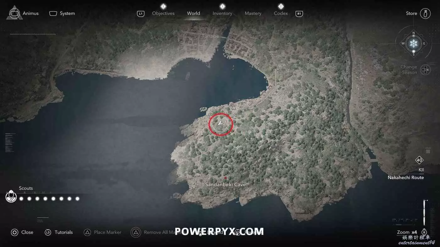 中邊路(位於【三段壁洞窟】敵人營地內,入口如下方第二張截圖所示,按L2/LT可以看到營地內有個白點標記)