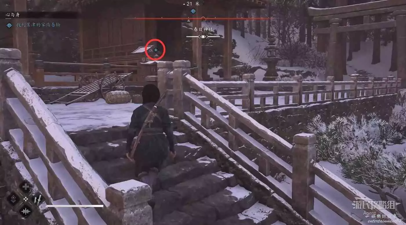 茉津婆婆讓你去找她的家傳卷軸,解決盜賊,走上階梯後在右邊拿到卷軸,然後回去找父親對話。