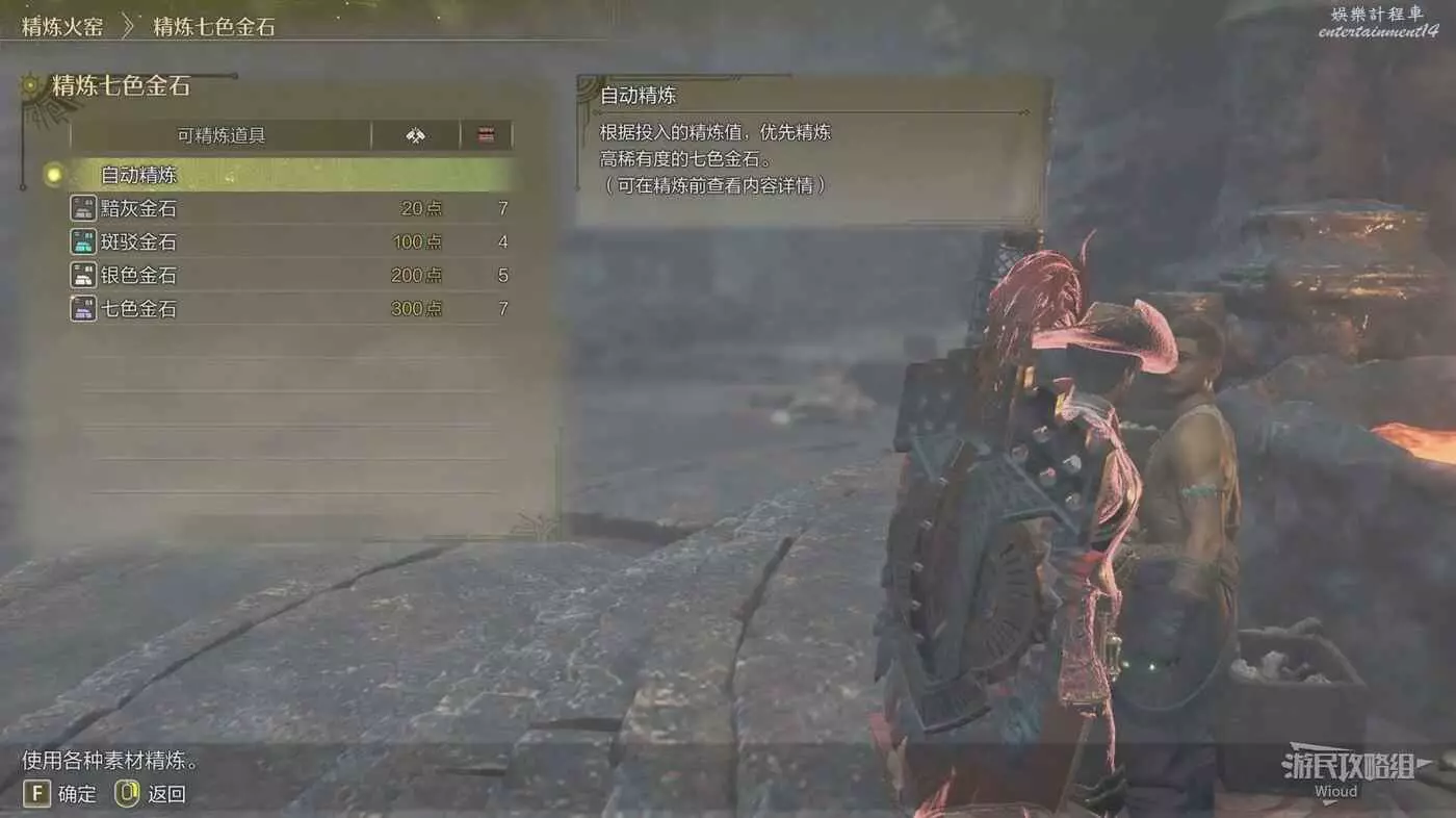 只會出現在湧油古的大本營,與圖示所示位置的NPC對話可以將怪物素材花錢精煉成各種金石。