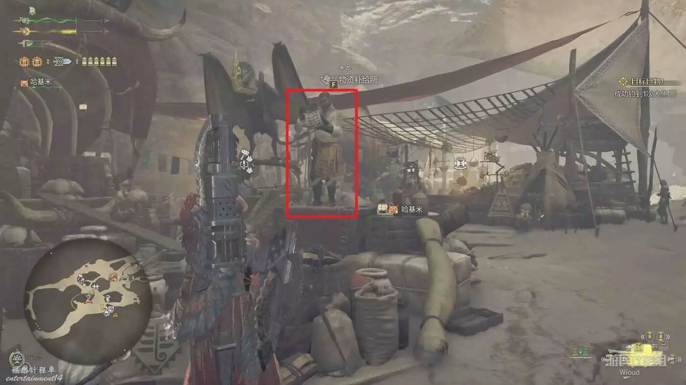 每個地圖的營地都有一個站在箱子上的【物資補給所】,不同營地其NPC的名稱也不一樣,因此我們只需要認准帆船圖示以及物資補給所的名稱即可。