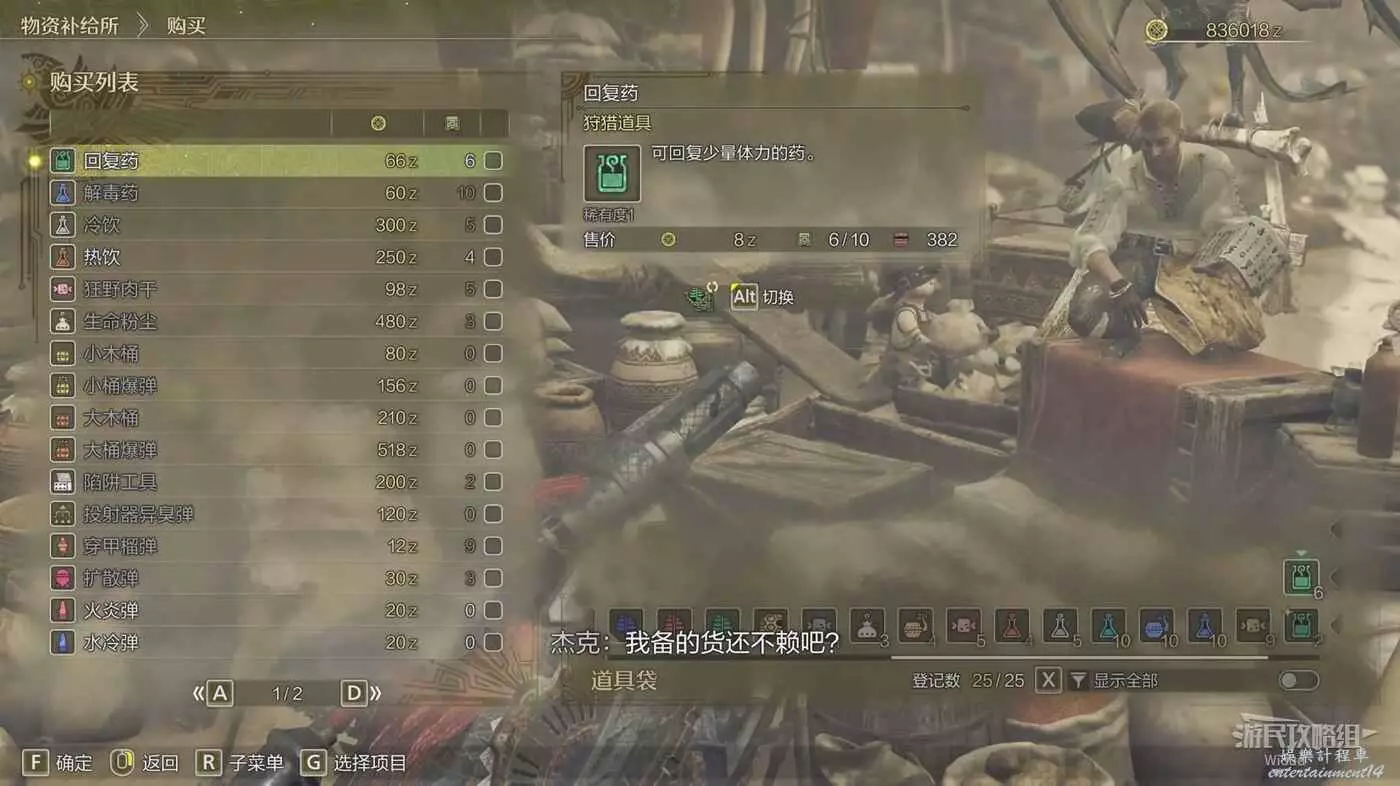 物資補給所會售賣基礎的補給品,各類彈藥等,沒有購買數量限制,但玩家所持數量則是固定的。