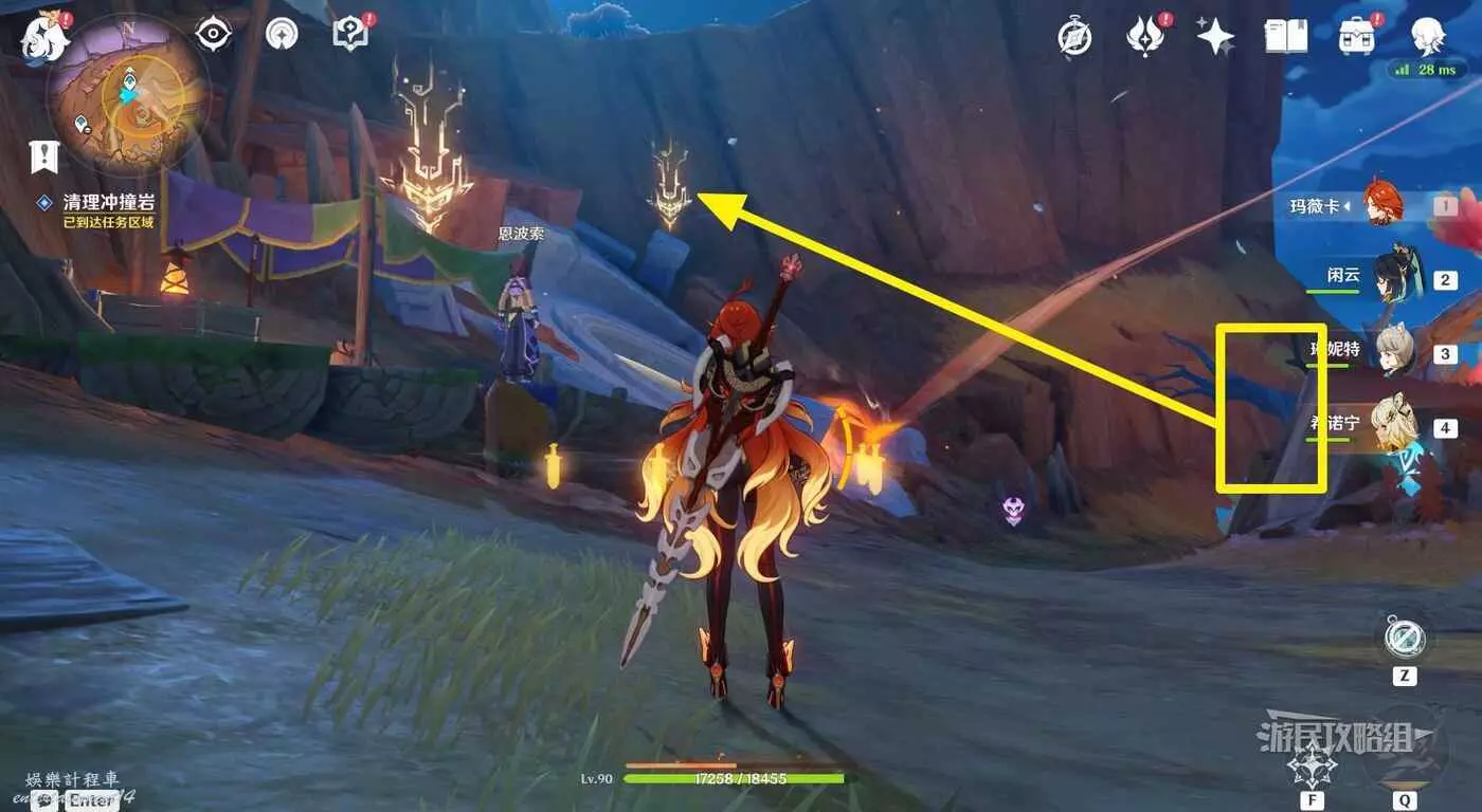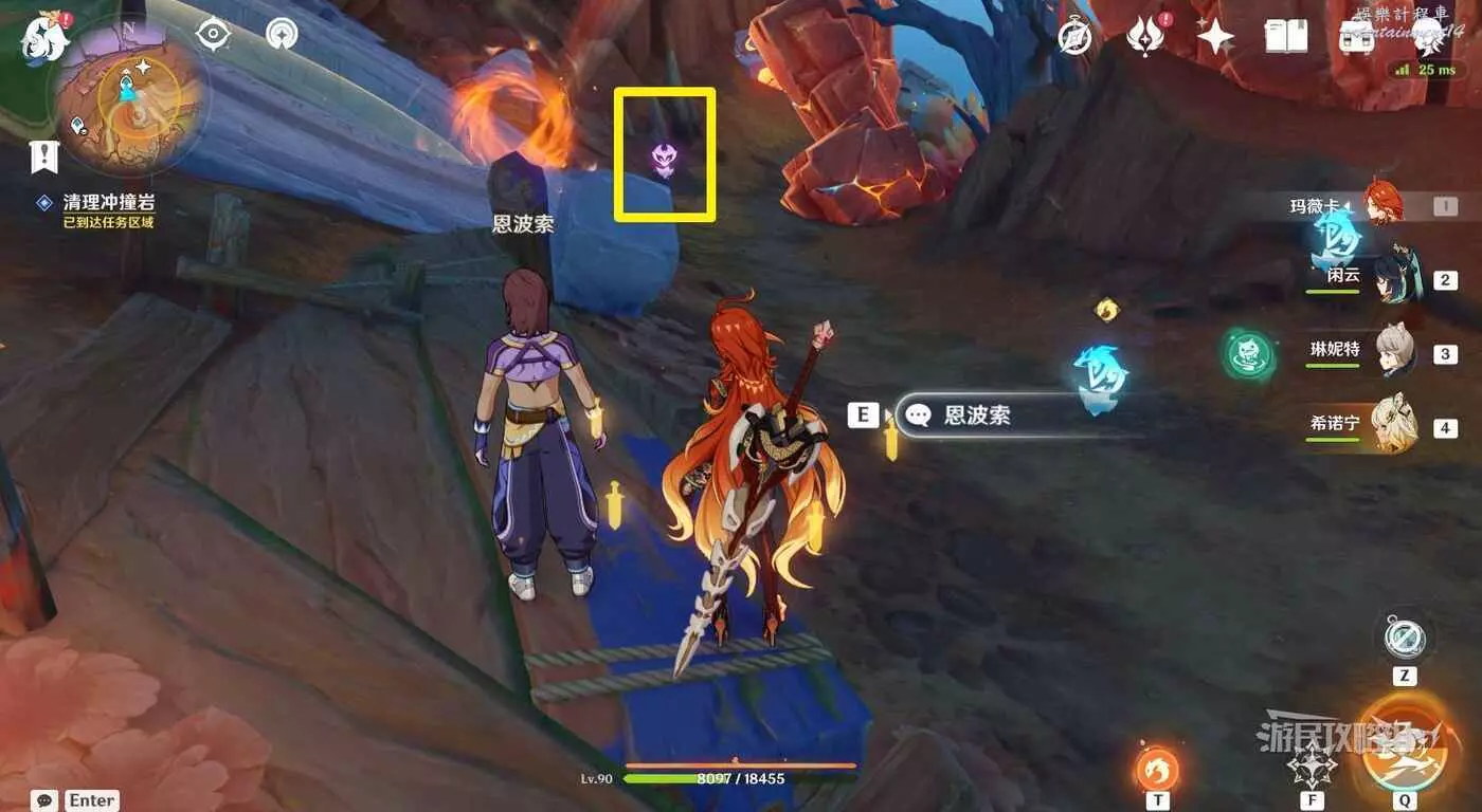 接取任務後,在恩波索附近找到突角龍的變身圖示,變成突角龍後,清理恩波索附近擋路的岩石。
