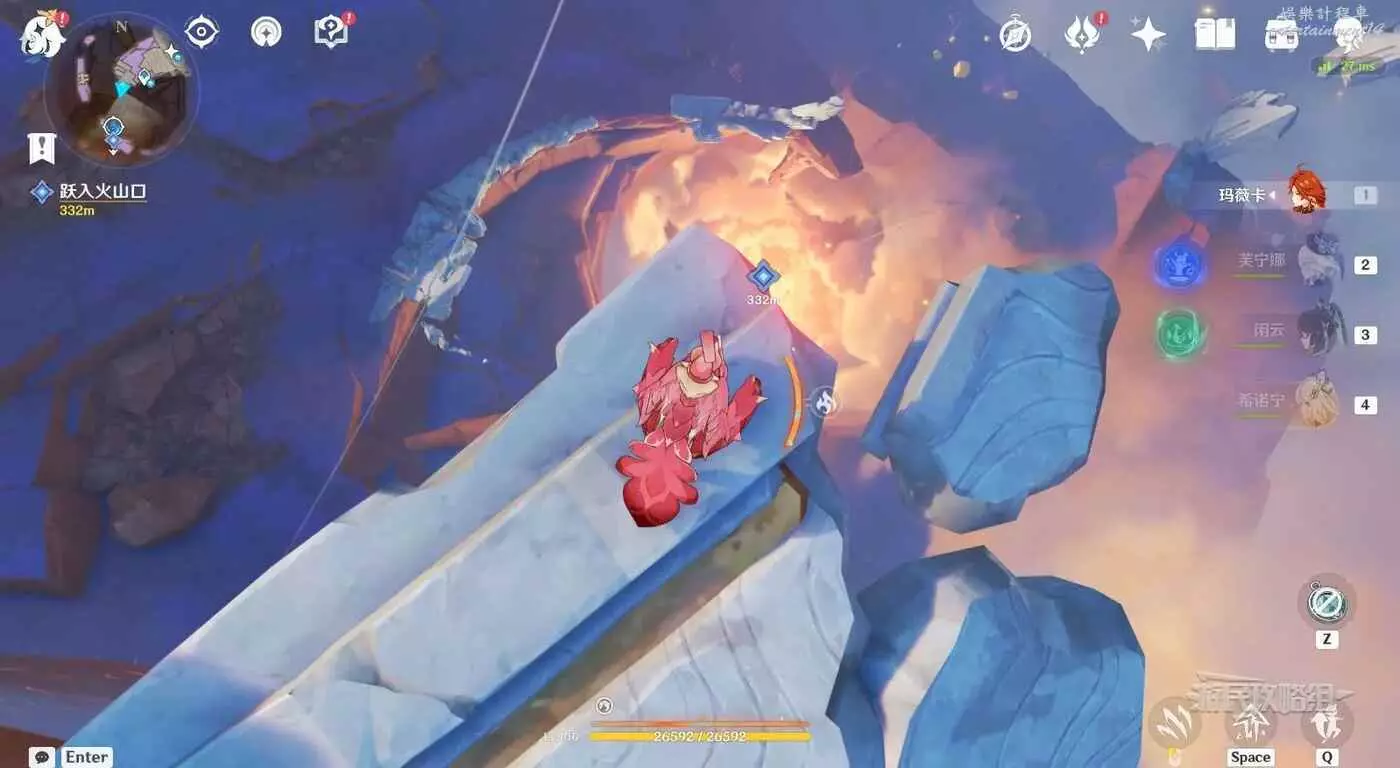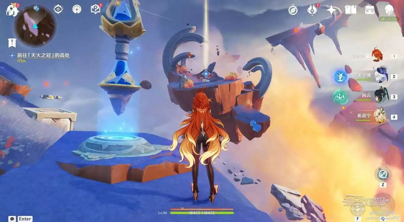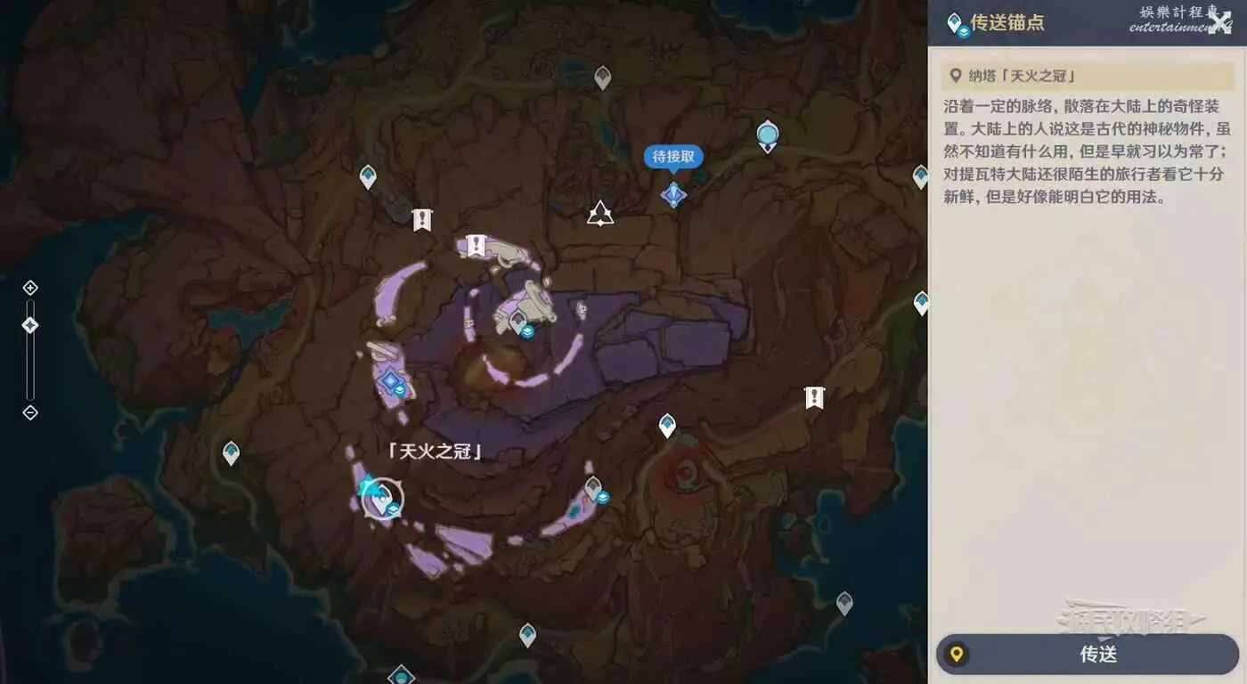 完成世界任務【古遺跡的調查者】後,在遺跡門口會出現一條光路,使用納塔角色沿著光路來到火山口附近,就能觸發第一個任務【納華欽之躍】。如果還沒有完成【古遺跡的調查者】,可以前往沃陸之邦安饒之野孑遺的留跡完成世界任務【碎岩及其往事】,也可以解鎖通往天火之冠的光路。