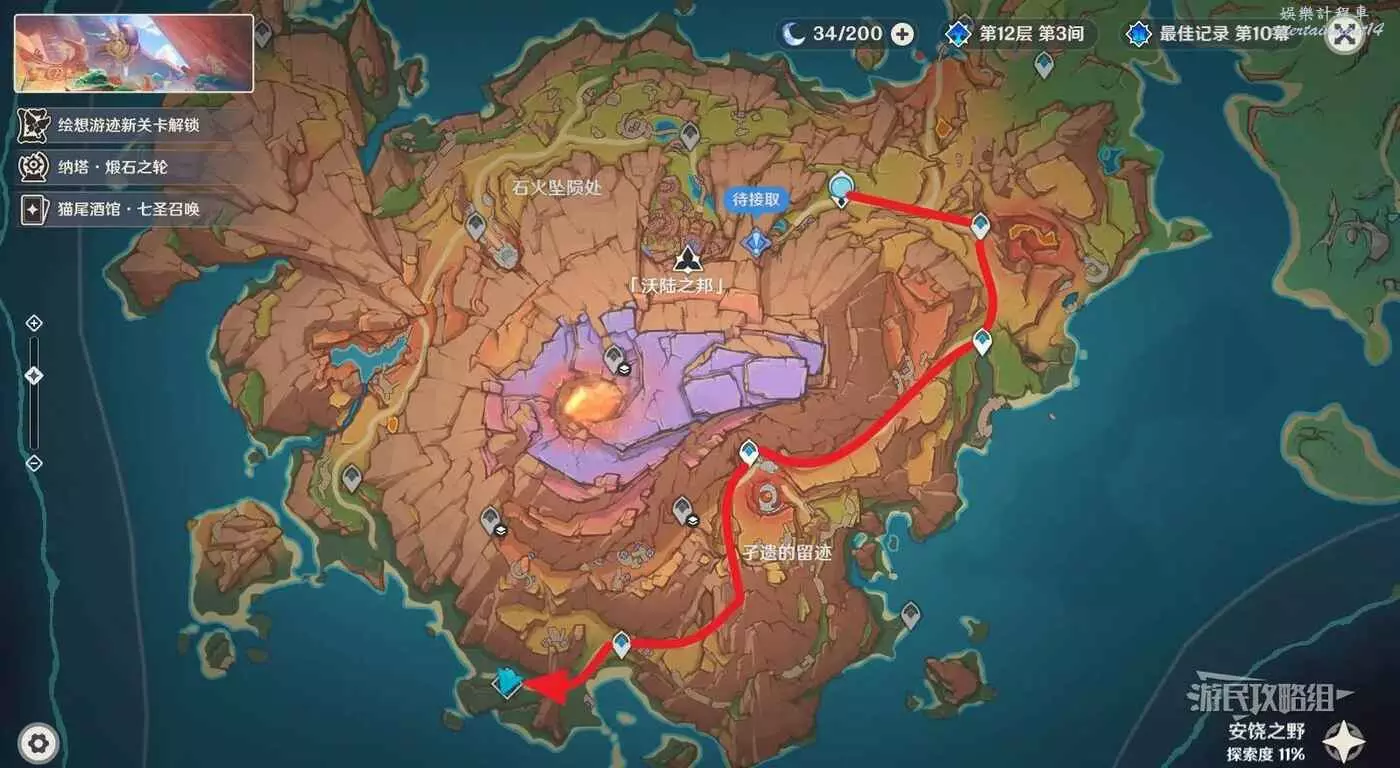 建議先從納塔最下方安饒之野的傳送錨點沿主路前進,開啟安饒之野的七天神像並解鎖地圖。
