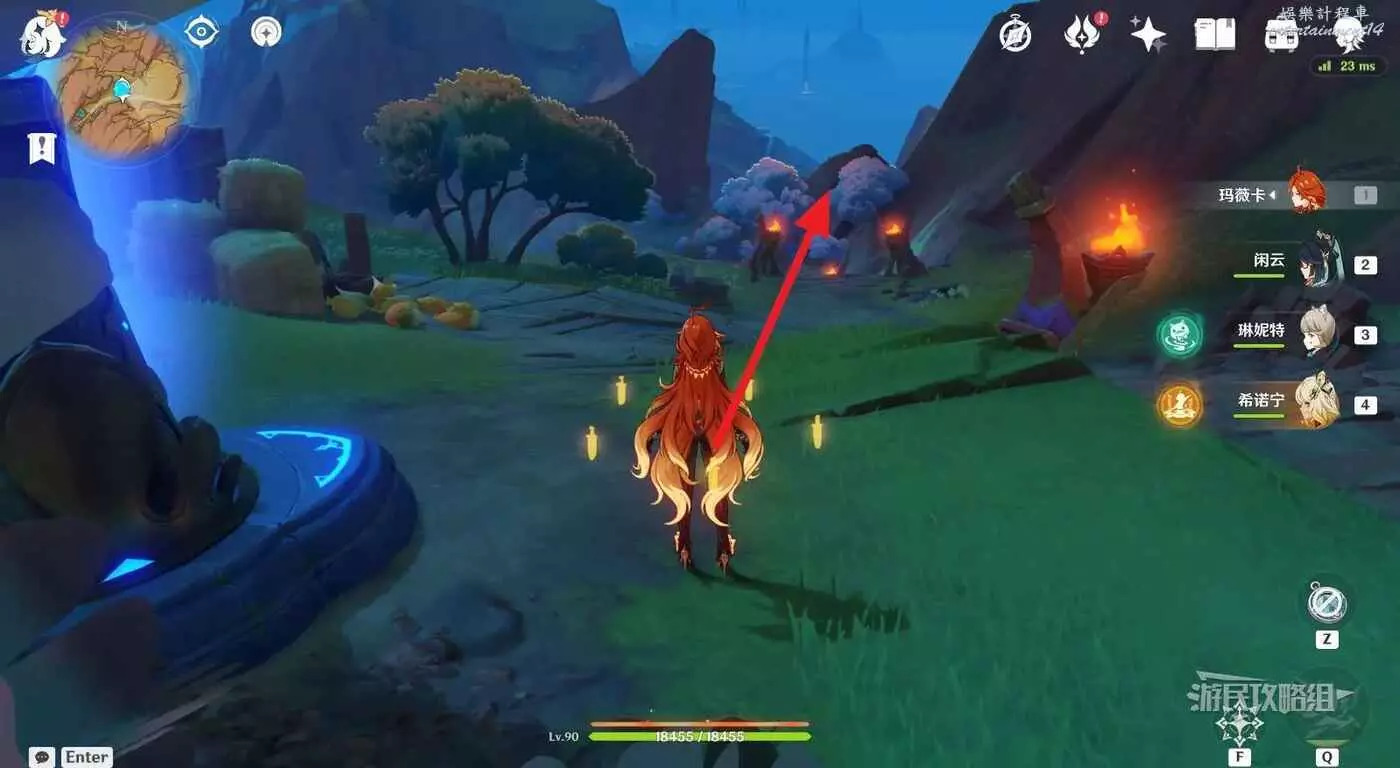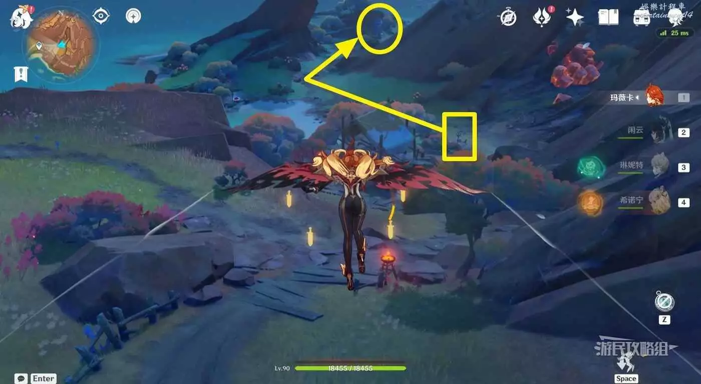 站在傳送錨點所在位置,往小地圖南方向(下方)看可以看到有前方的高山中間有縫隙,沿路往縫隙方向走。