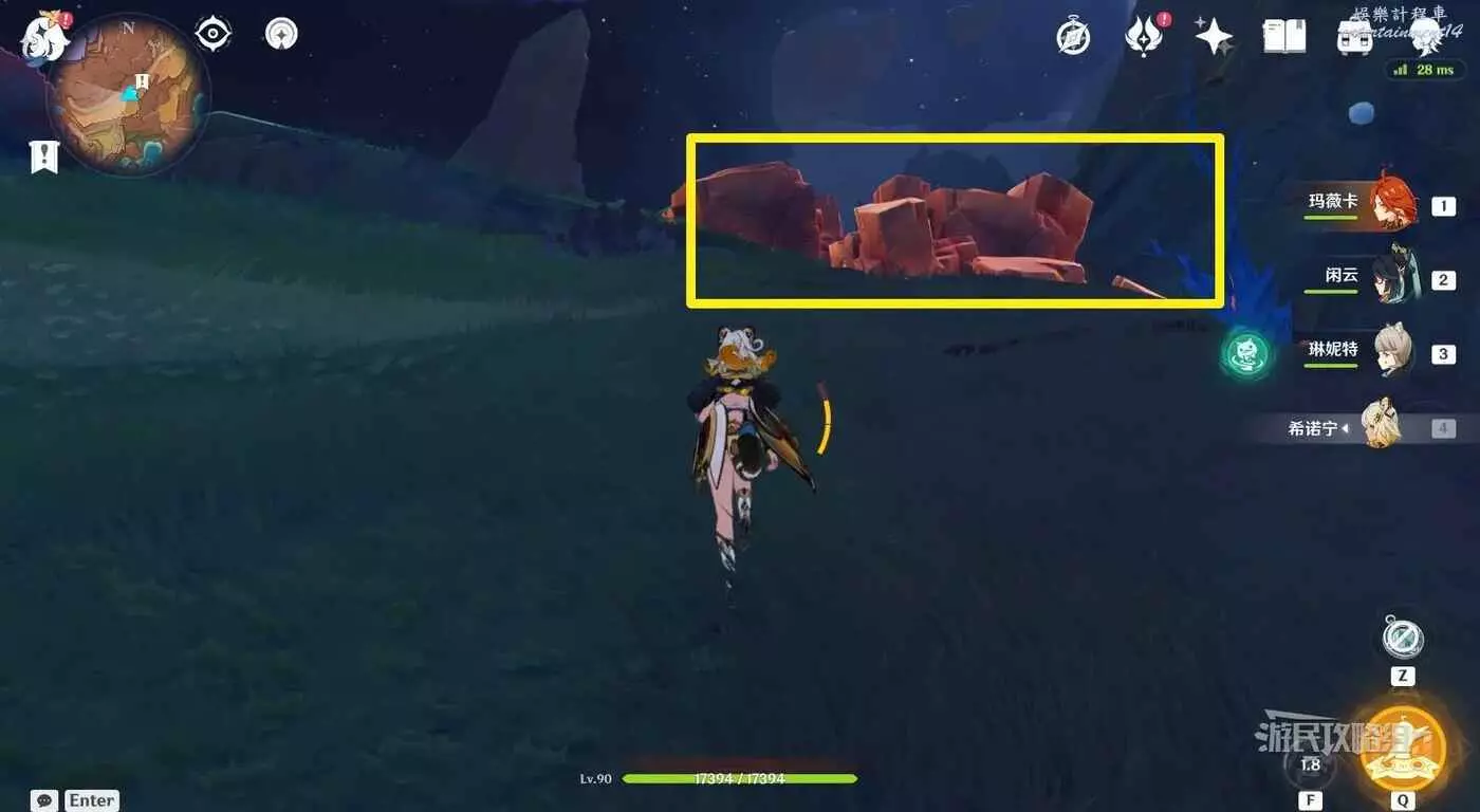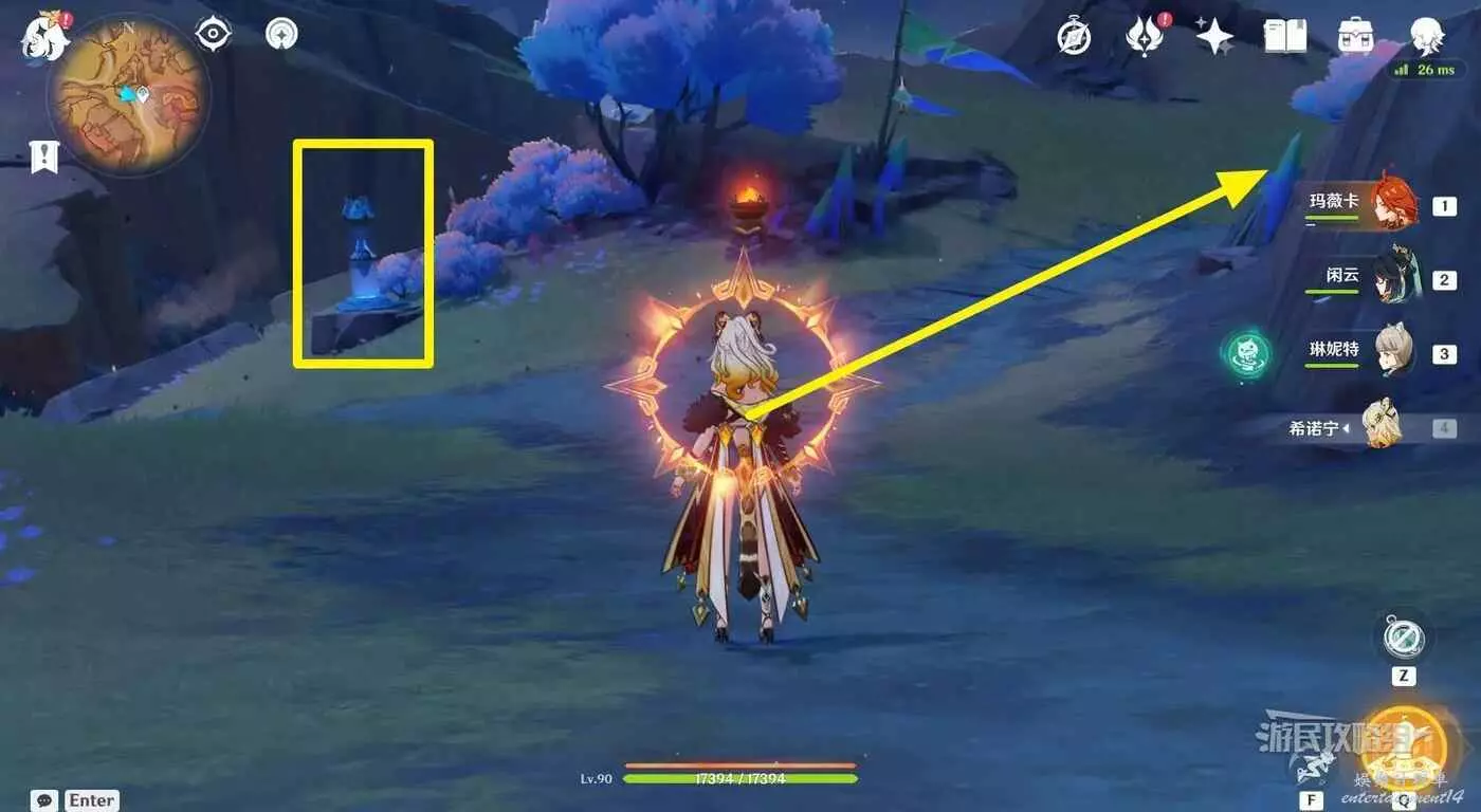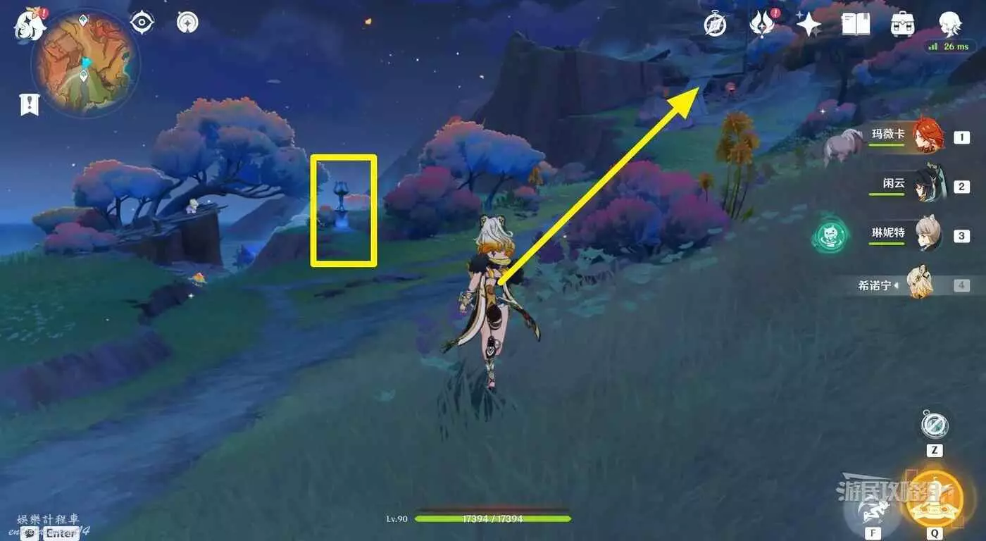 穿過擋路的石頭後,繼續沿路前進,前方右側有個傳送錨點,往傳送錨點方向走。