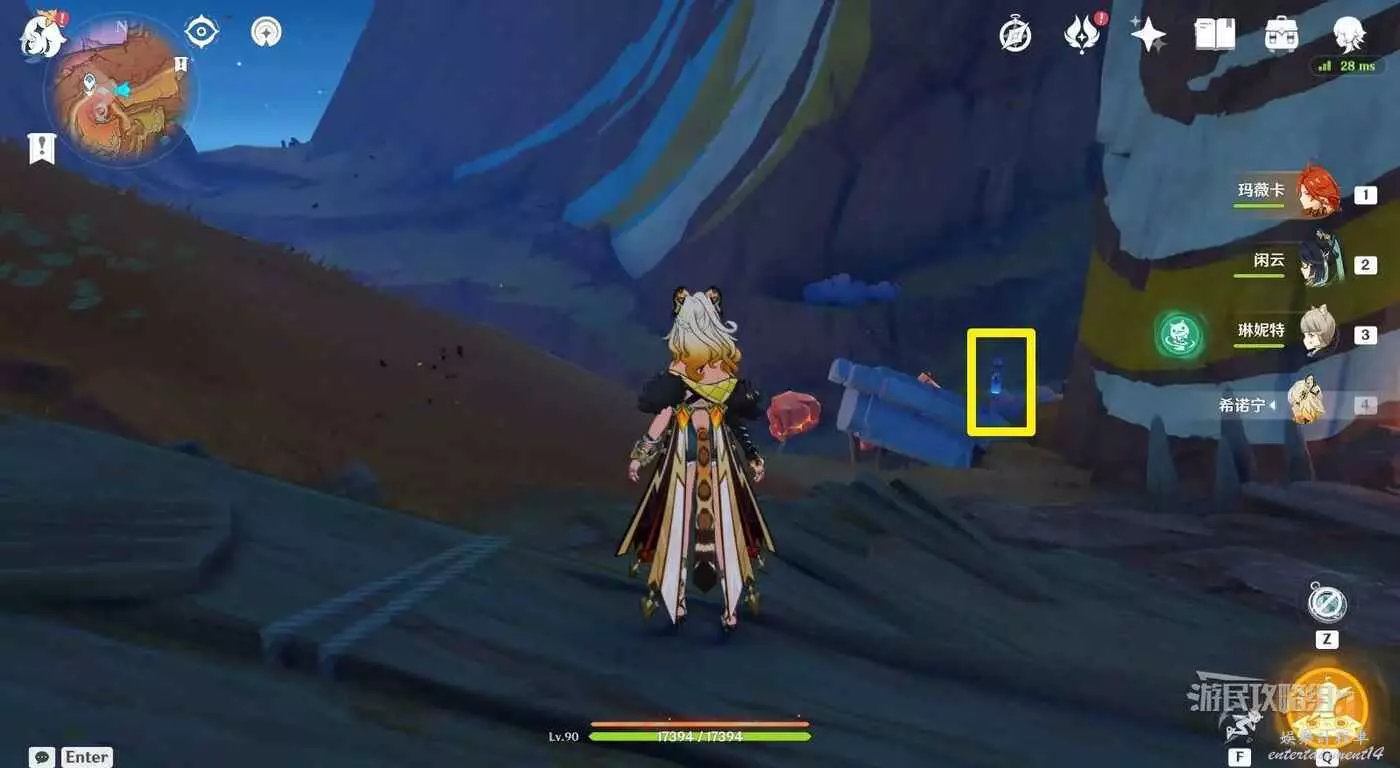 穿過縫隙繼續沿路走,前方土坡下方可以看到傳送錨點,往錨點方向走。秘境門就在錨點前方,到達錨點位置後繼續沿路往前走拐個彎就能看到。