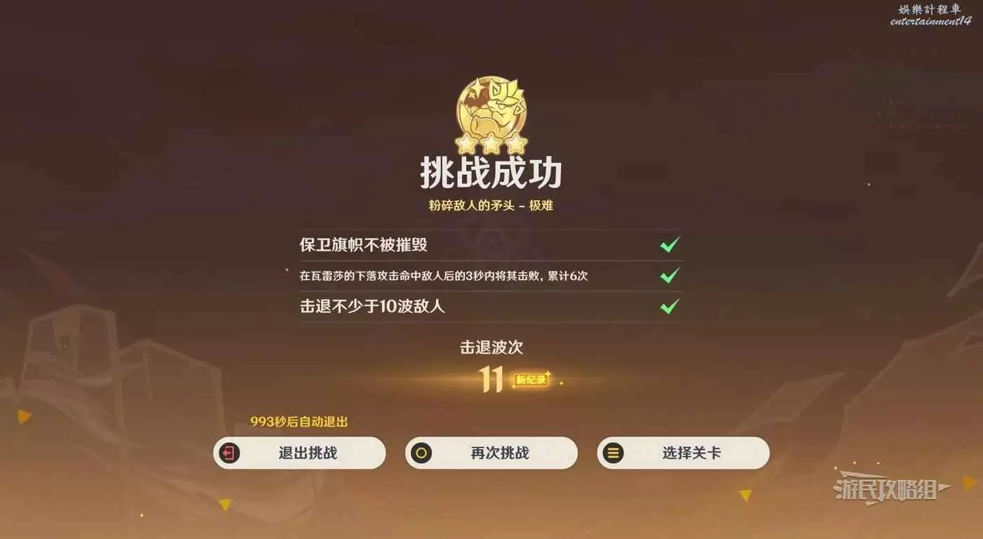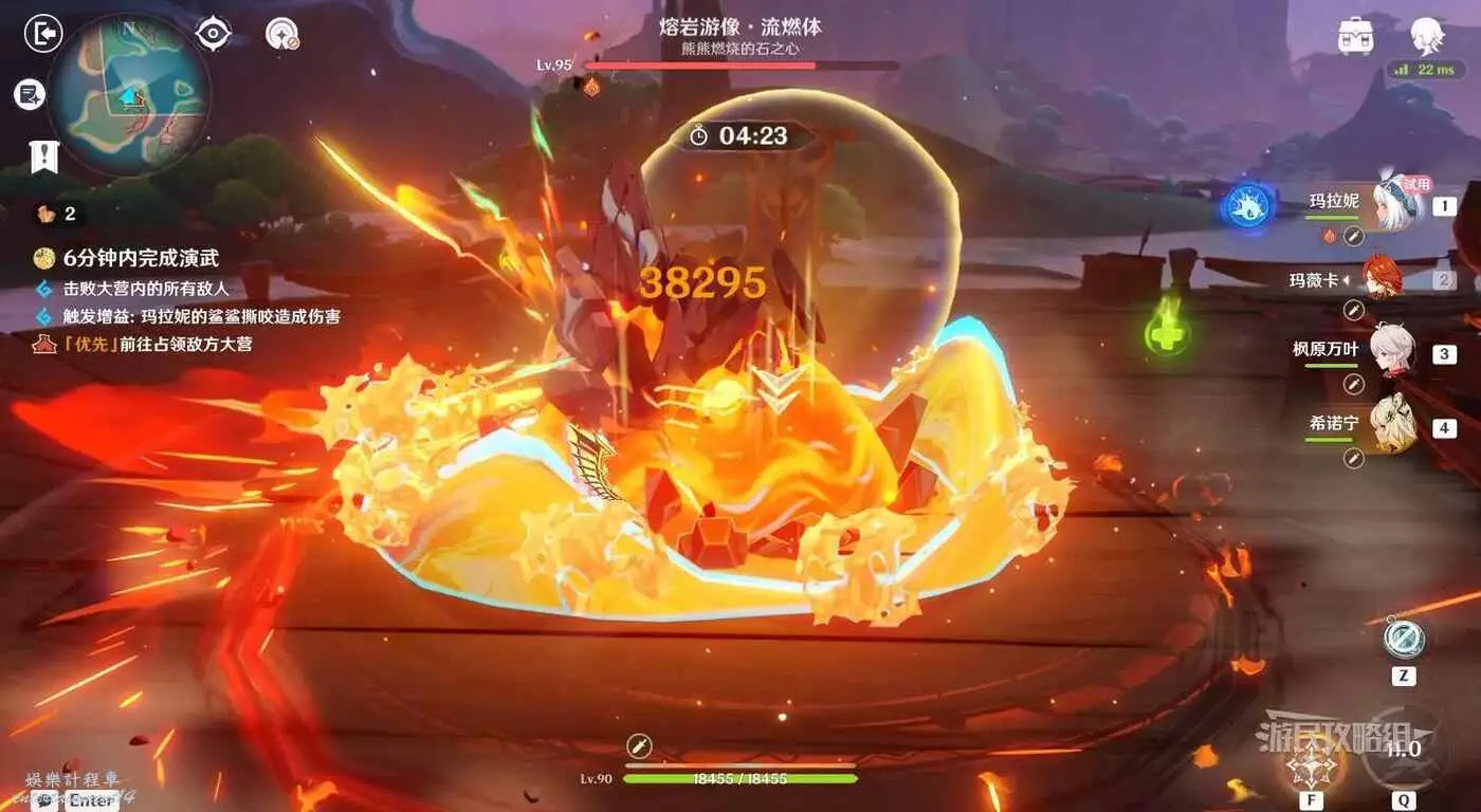 擊碎大本營護盾後,前往大本營擊敗敵人,最終的敵人是熔岩遊像·流燃體,血量非常多,利用自己的陣容和增益完成戰鬥即可完成整個關卡的挑戰。
