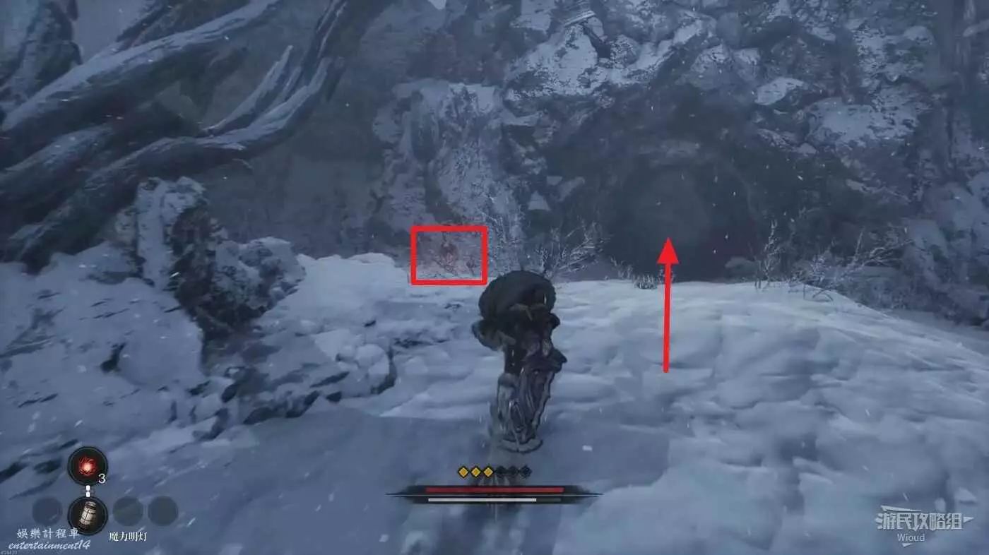 進入地圖先啟動前面的篝火,左前方兩隻猴子的位置有道具可拿,右側木頭樓梯處可以拿一個靈魂之淚粉末。