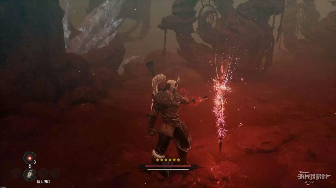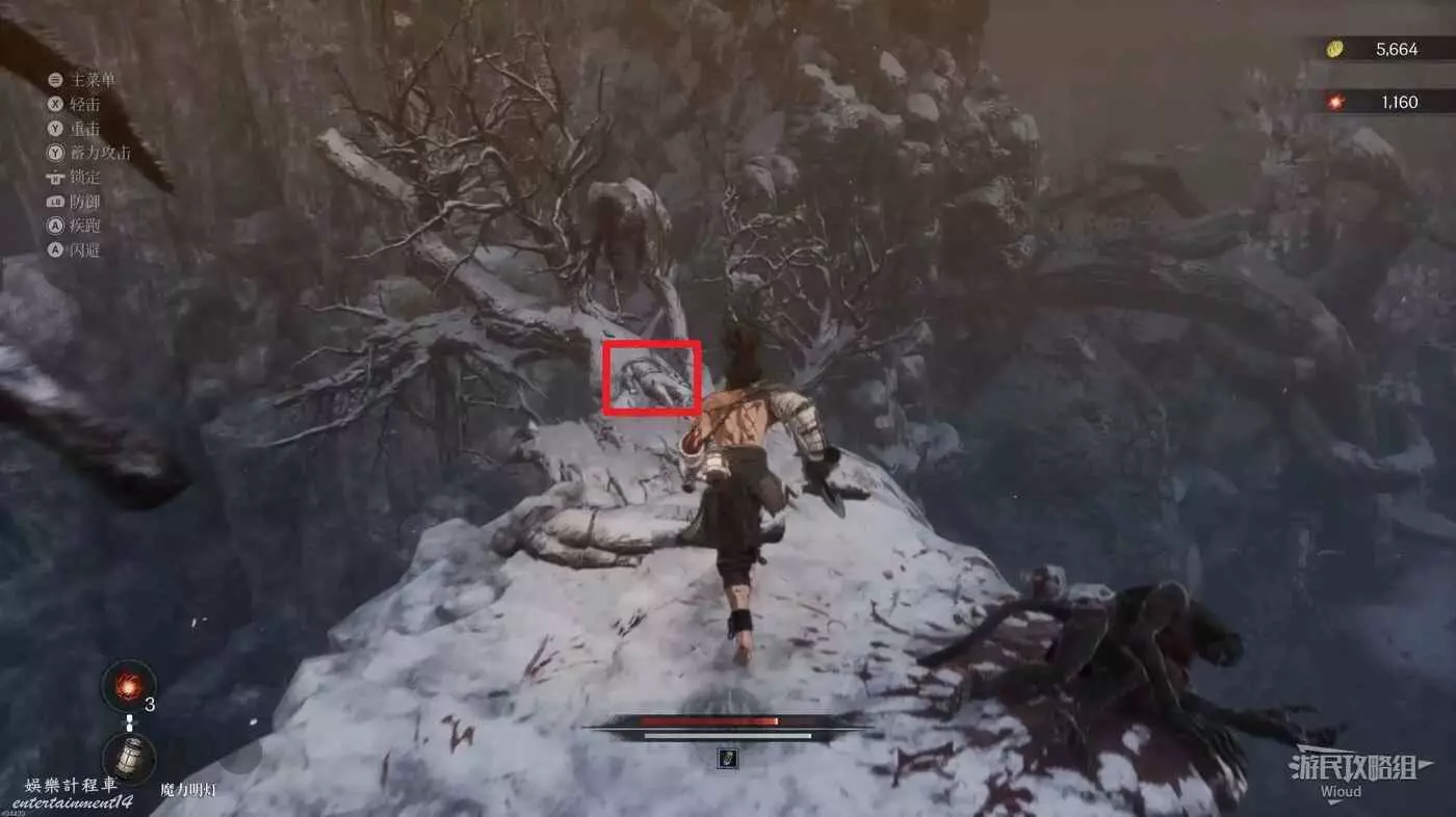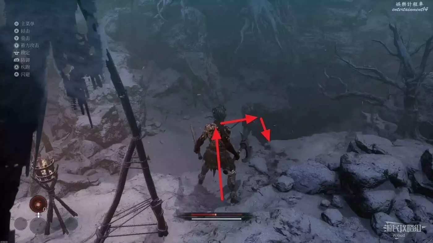需要特別注意兩隻狼前面的紅光屍體,這是本關卡新怪物蠕蟲的誘餌並不是靈魂之淚粉末,玩家靠近屍體就會看到肉蟲的嘴伸出來,如果還不趕緊離開會被蠕蟲直接咬住然後甩開被消耗不少血條。