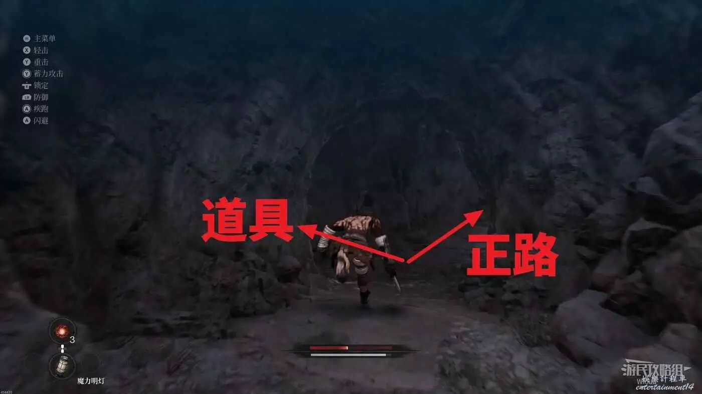 回到洞穴主路,右側不遠處還有一個能走的凹口,這個凹口直接通往剛才的梯子位置,直接無視沿路走到最深處。