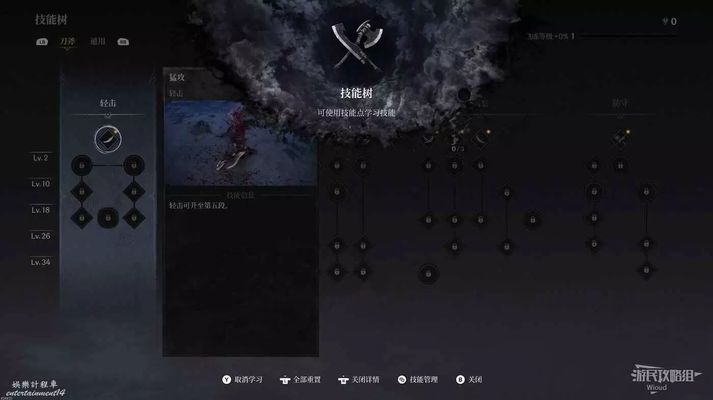繼續往前走一段距離解鎖技能樹,打開主功能表點擊技能樹進入詳情頁,這裡建議在通用技能點先把彈反或反制點出來。