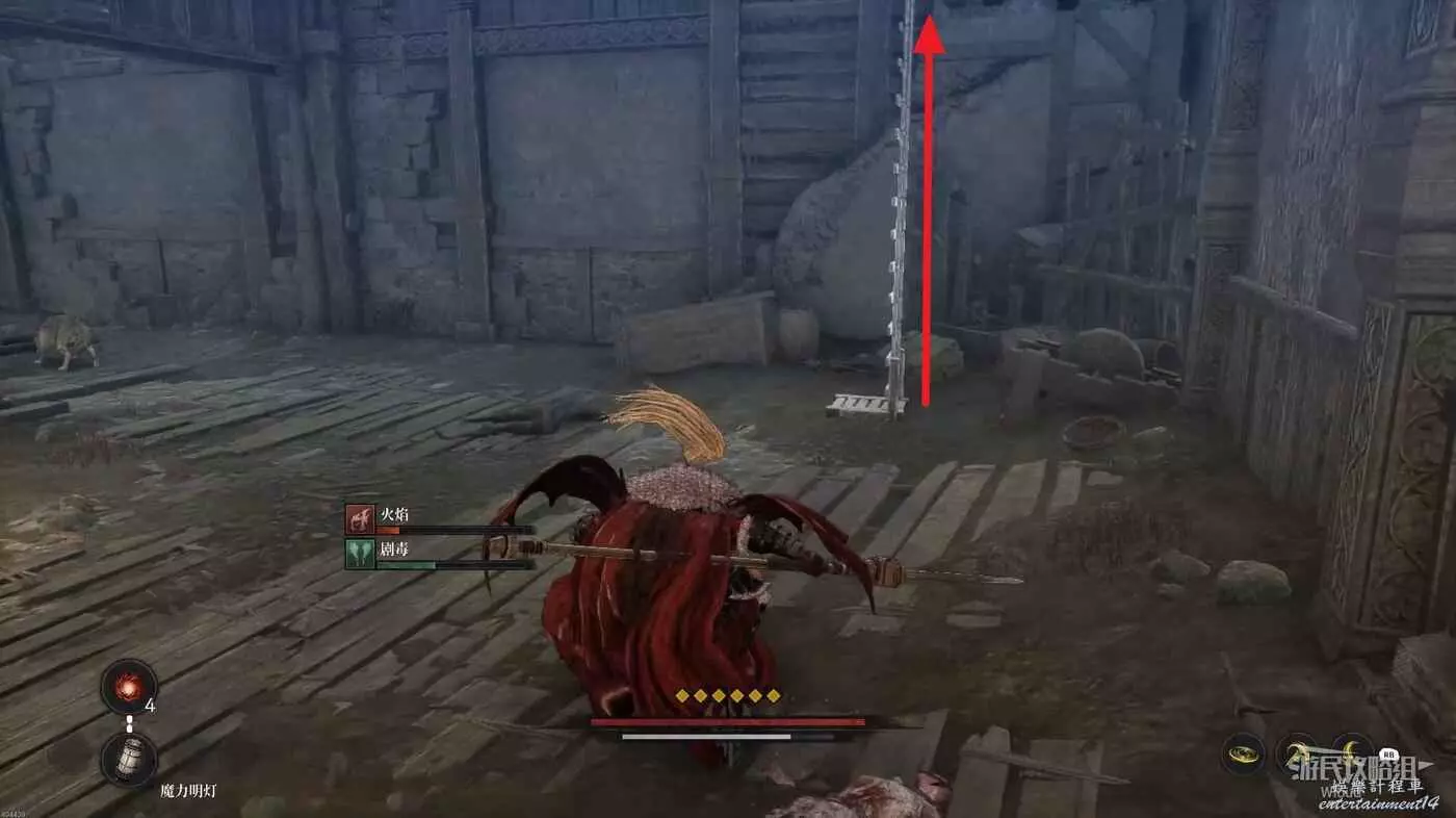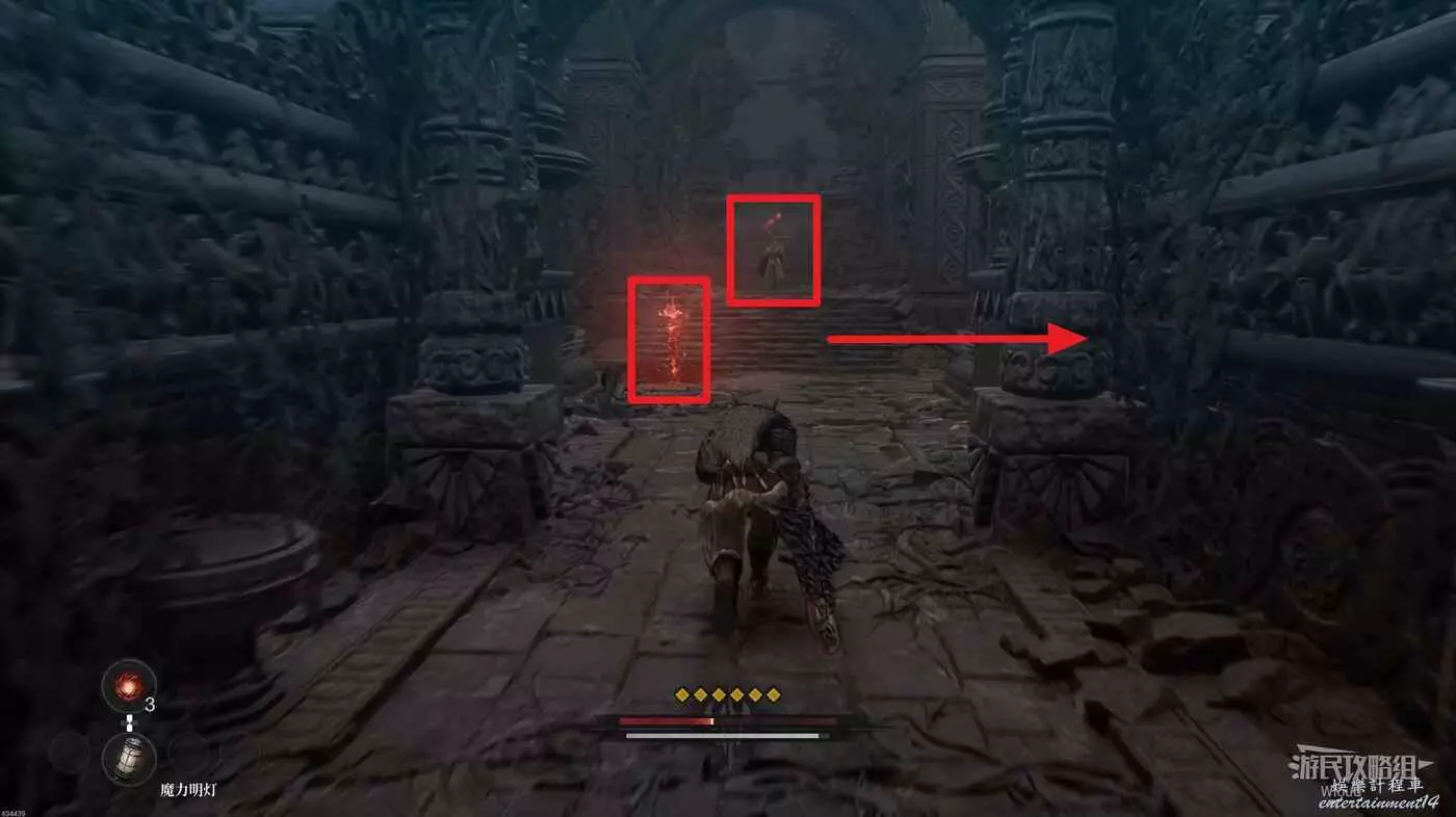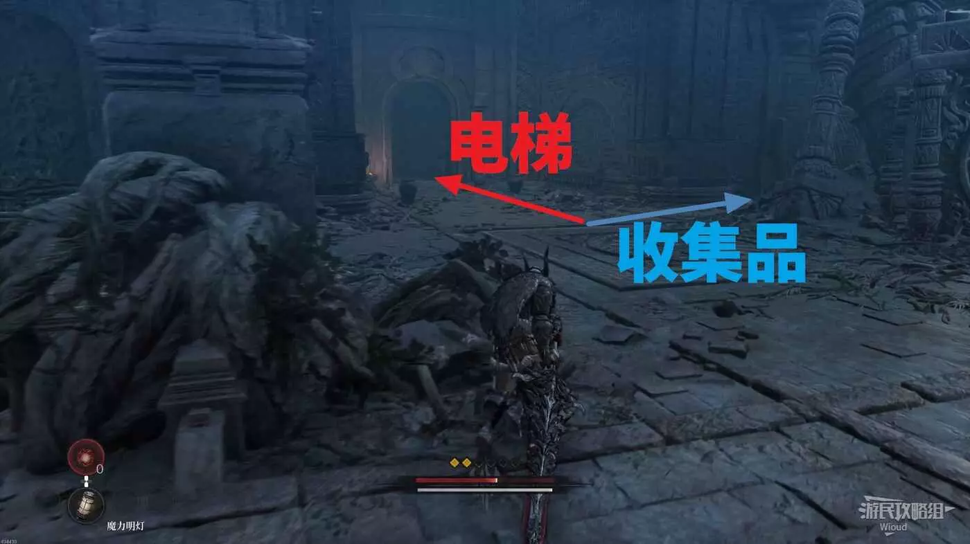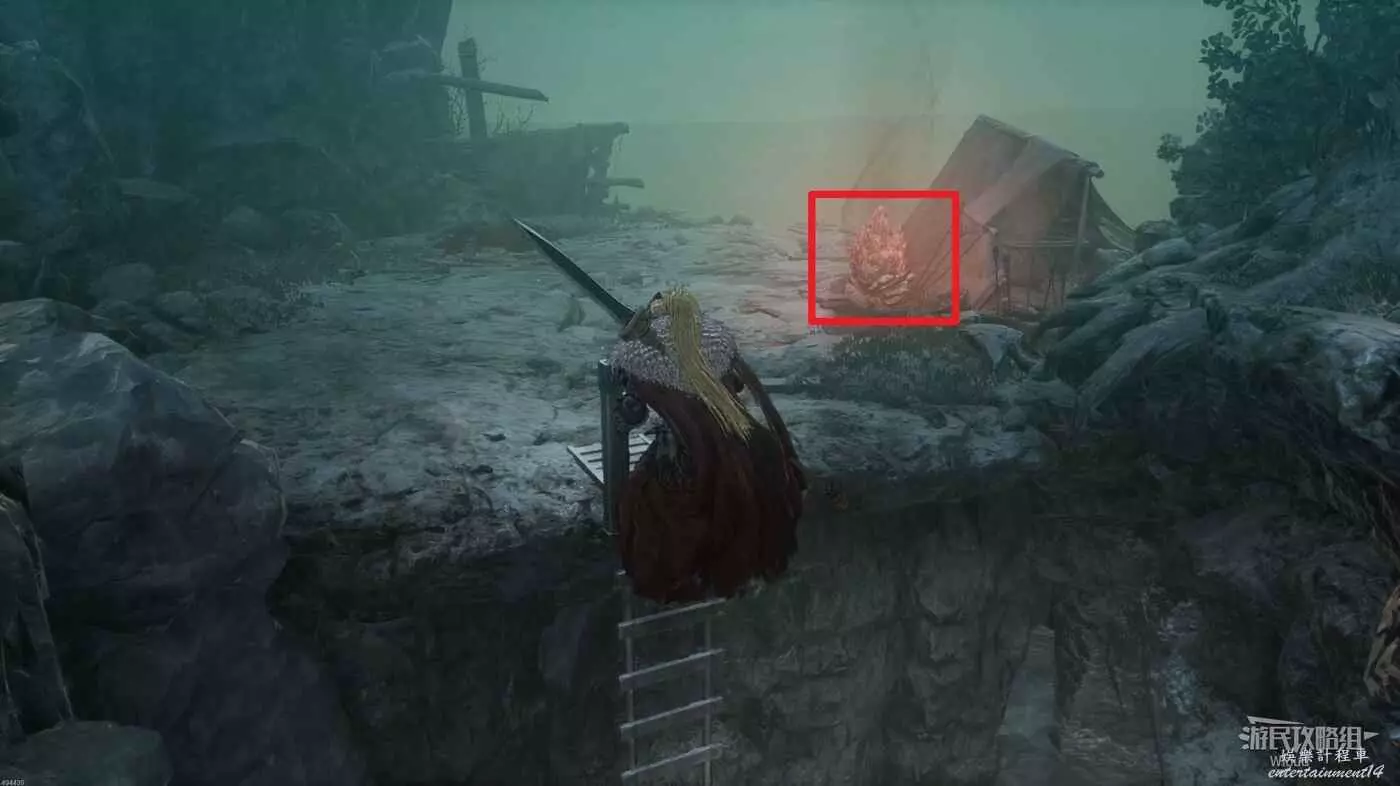 沿路走到盡頭,爬梯子移動到下一層,主路右側冤魂旁邊有一個道具。