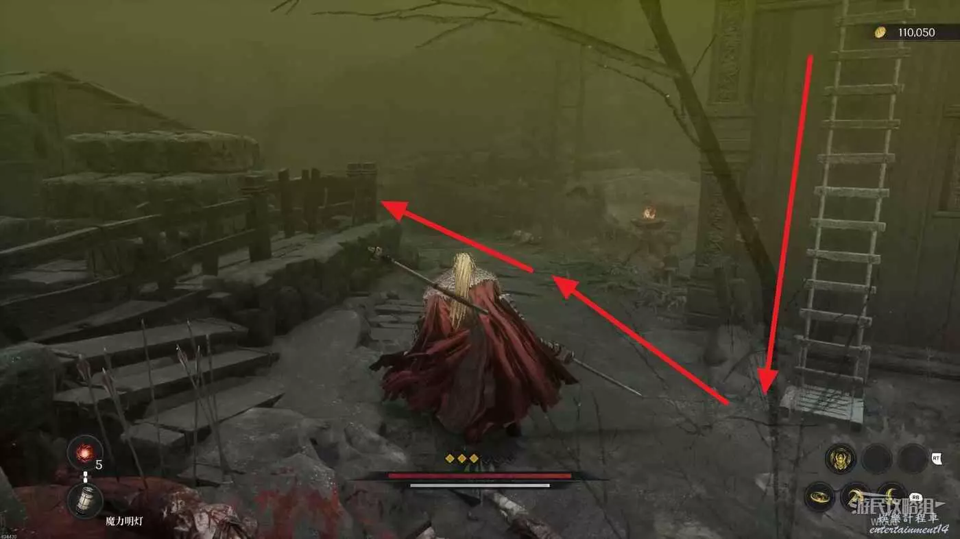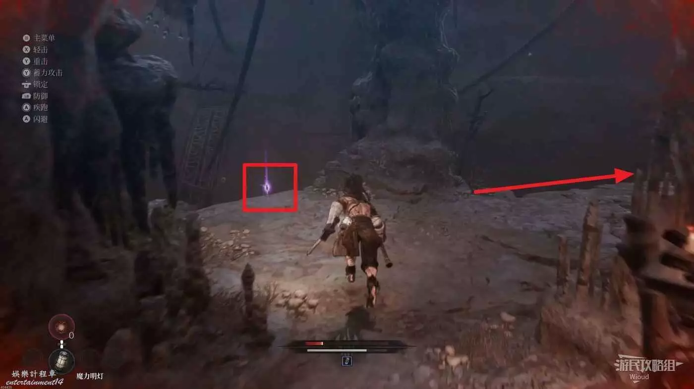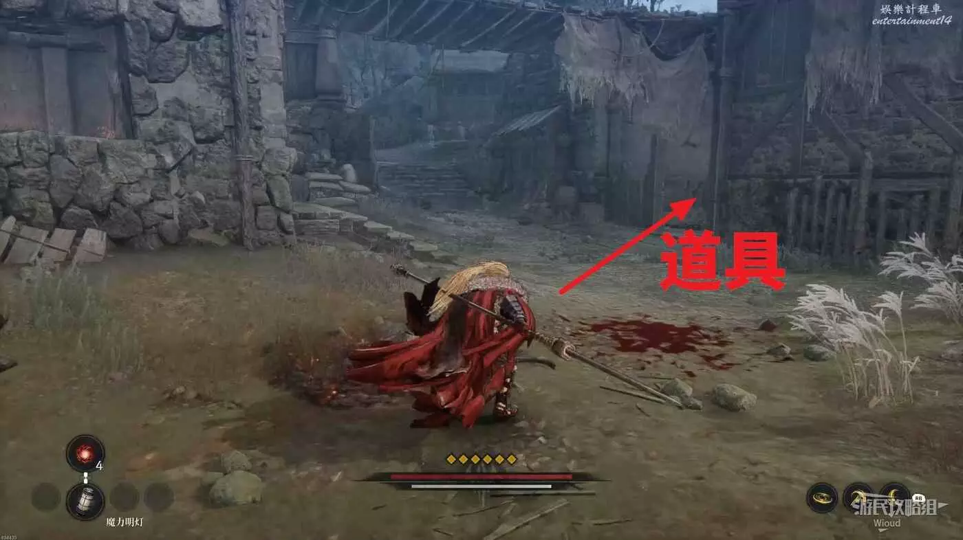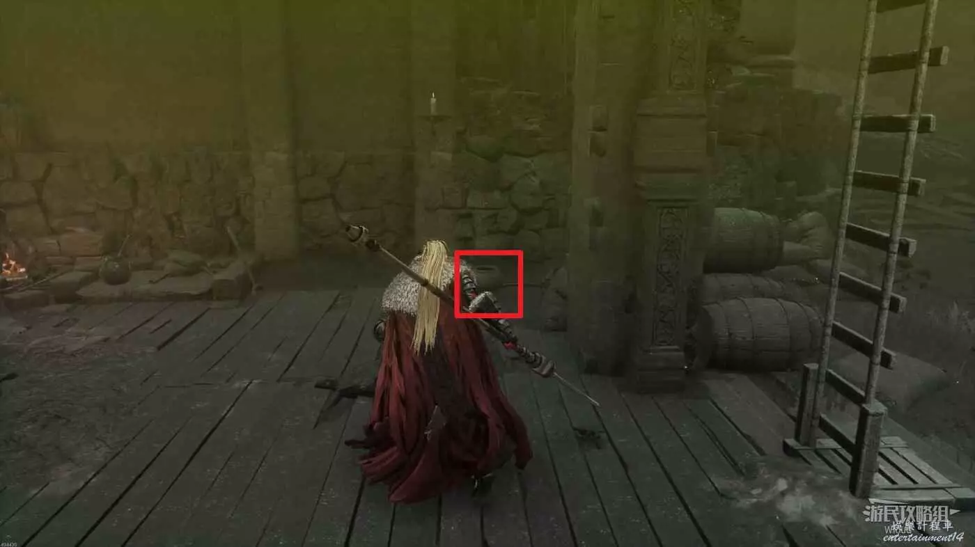 沿路走到盡頭,爬梯子移動到下一層,主路右側冤魂旁邊有一個道具。
