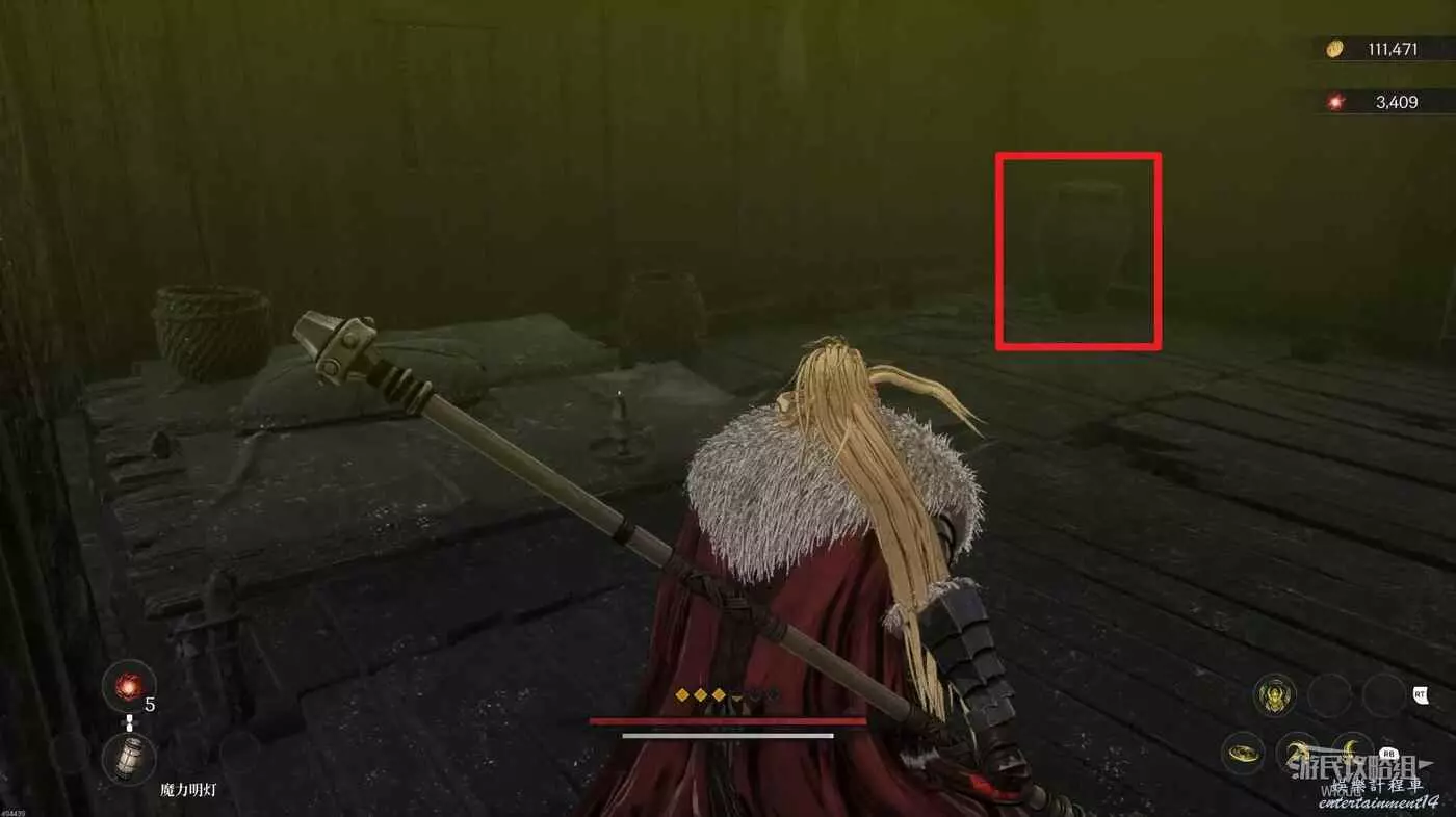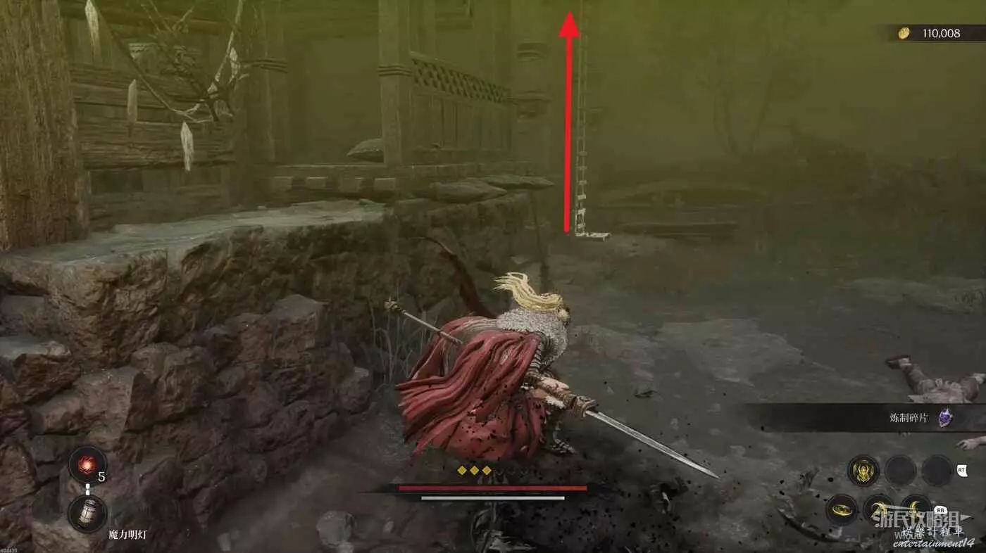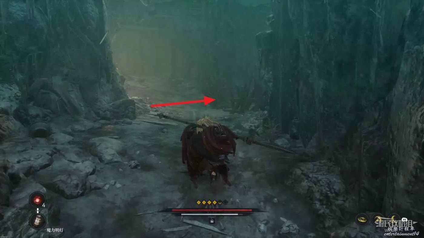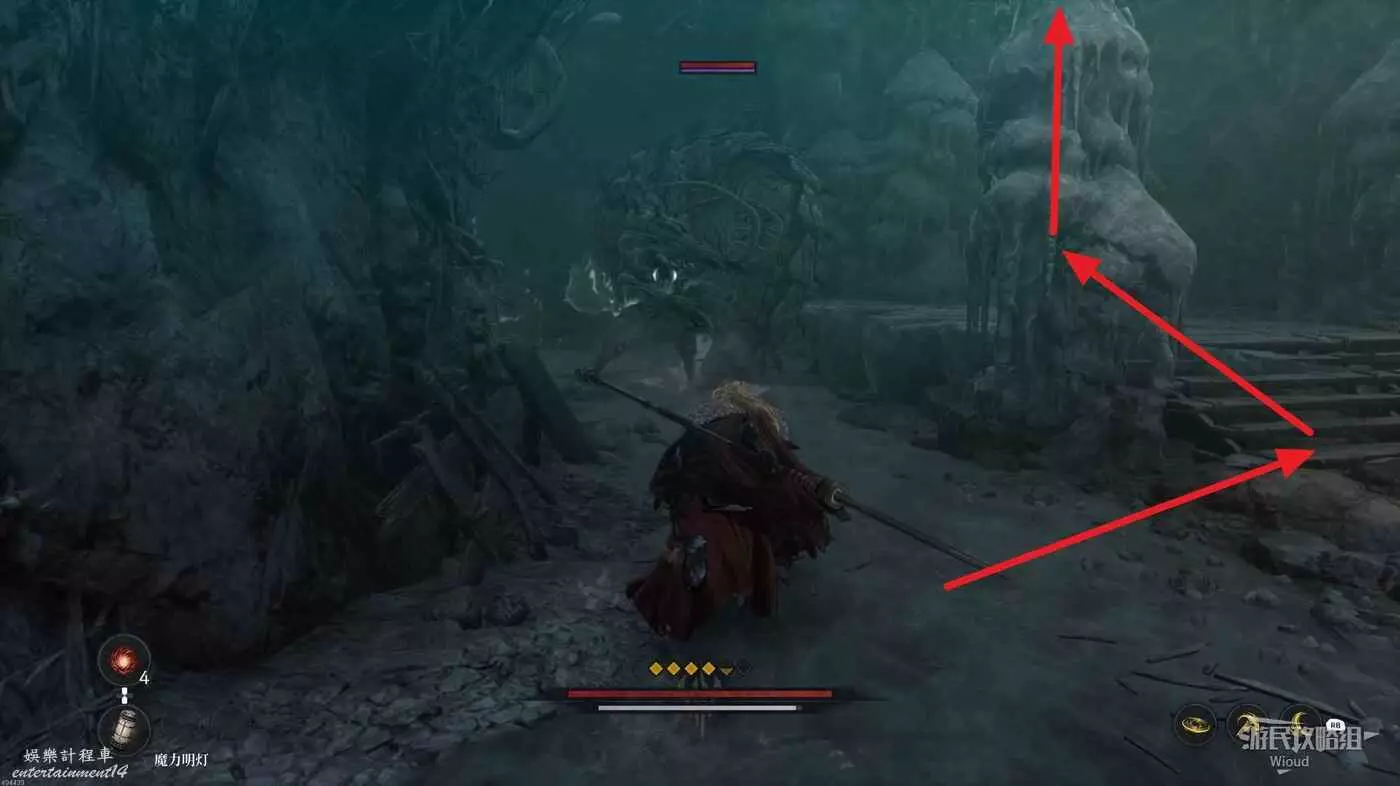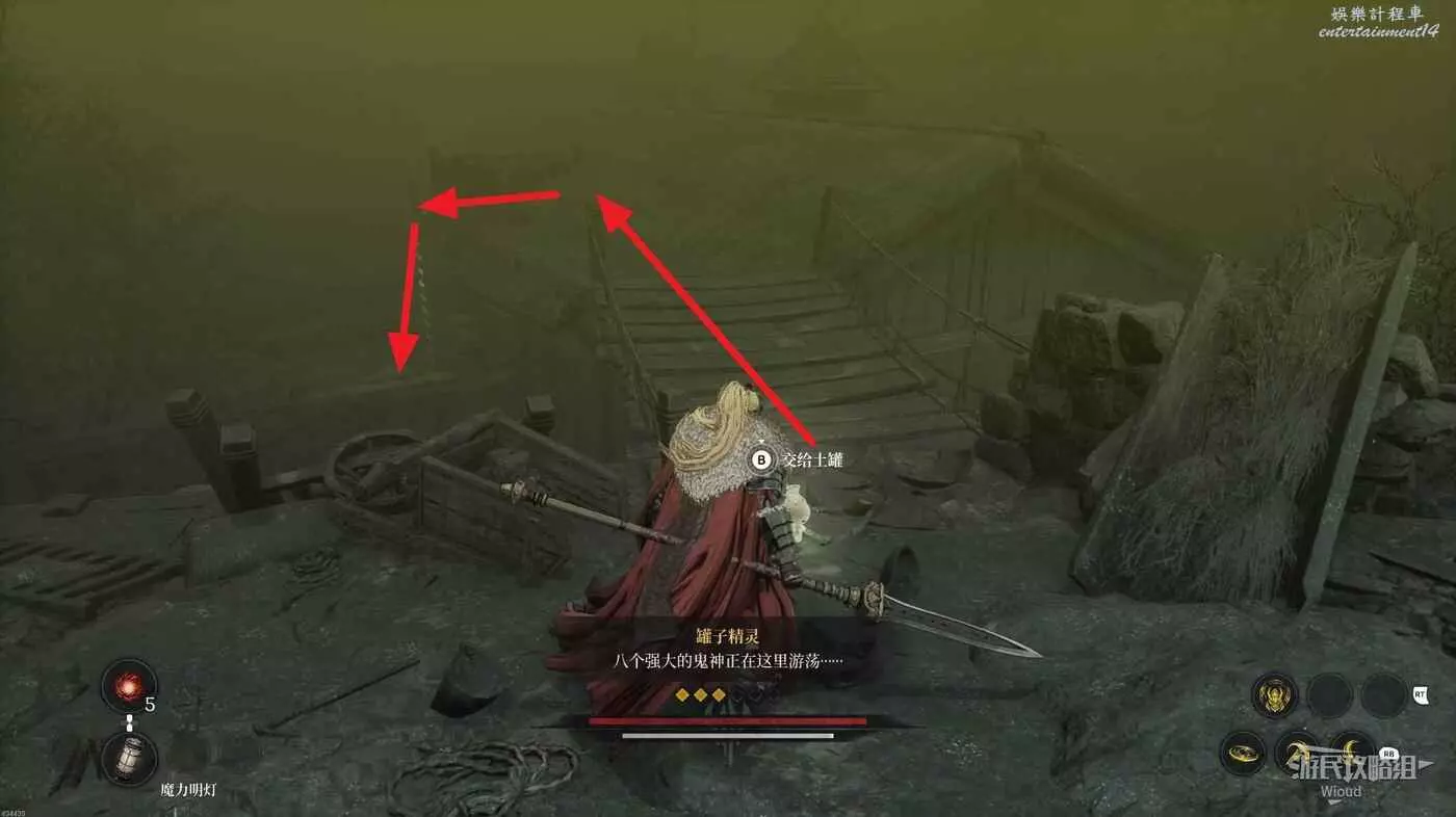 沿路走到盡頭,爬梯子移動到下一層,主路右側冤魂旁邊有一個道具。