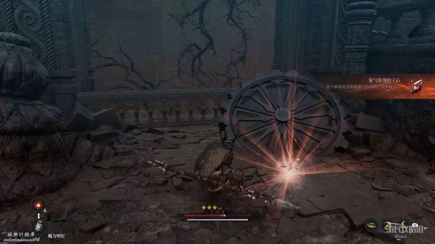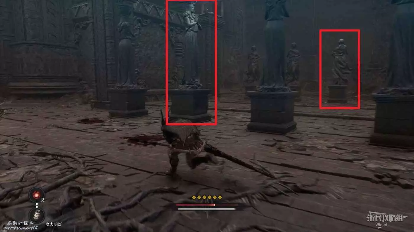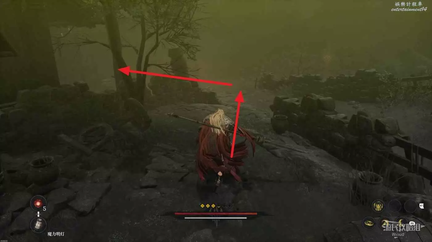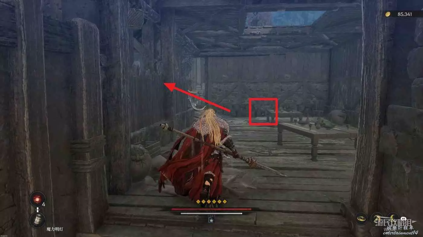 沿路走到盡頭,爬梯子移動到下一層,主路右側冤魂旁邊有一個道具。