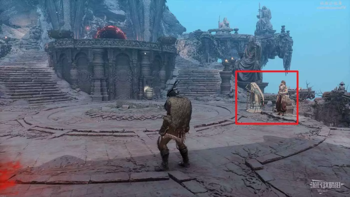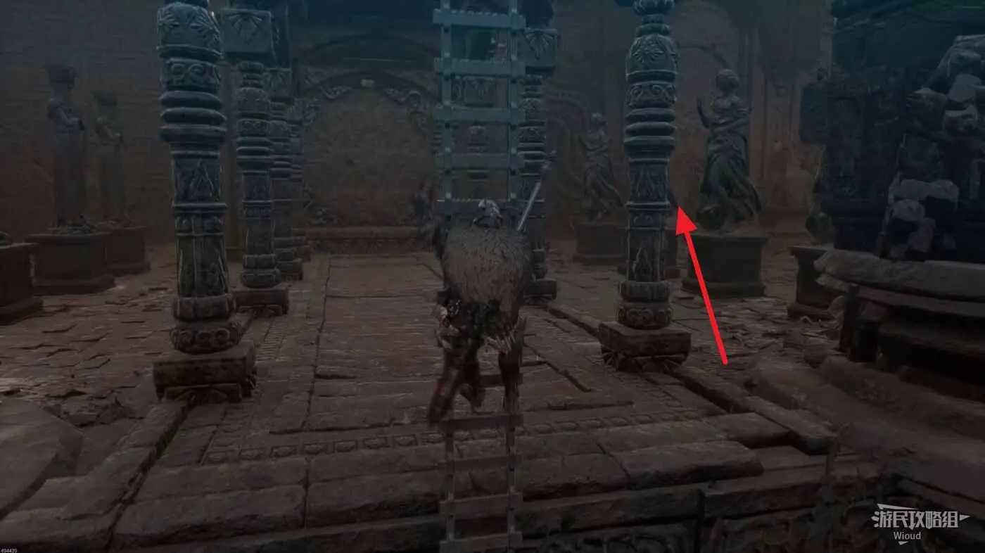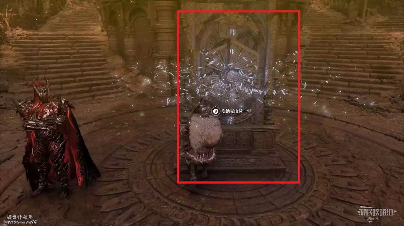 結束試煉後,往拔劍處圖騰左前方移動,直到右前方有一個明顯的狼雕像。